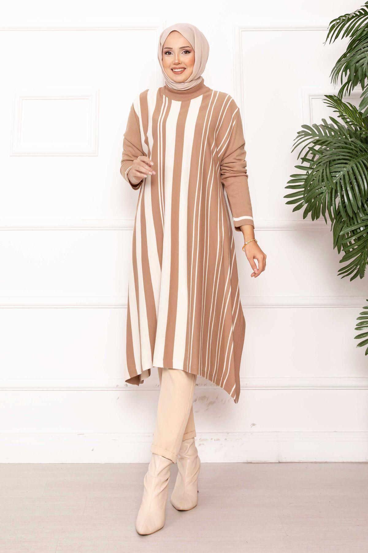 • The product is seasonal. New season asymmetrical striped mevlana knitwear tunic