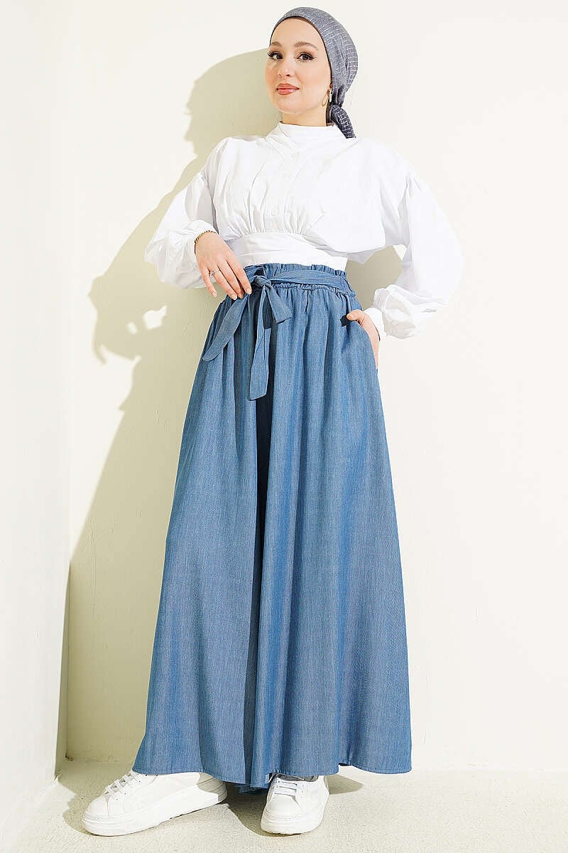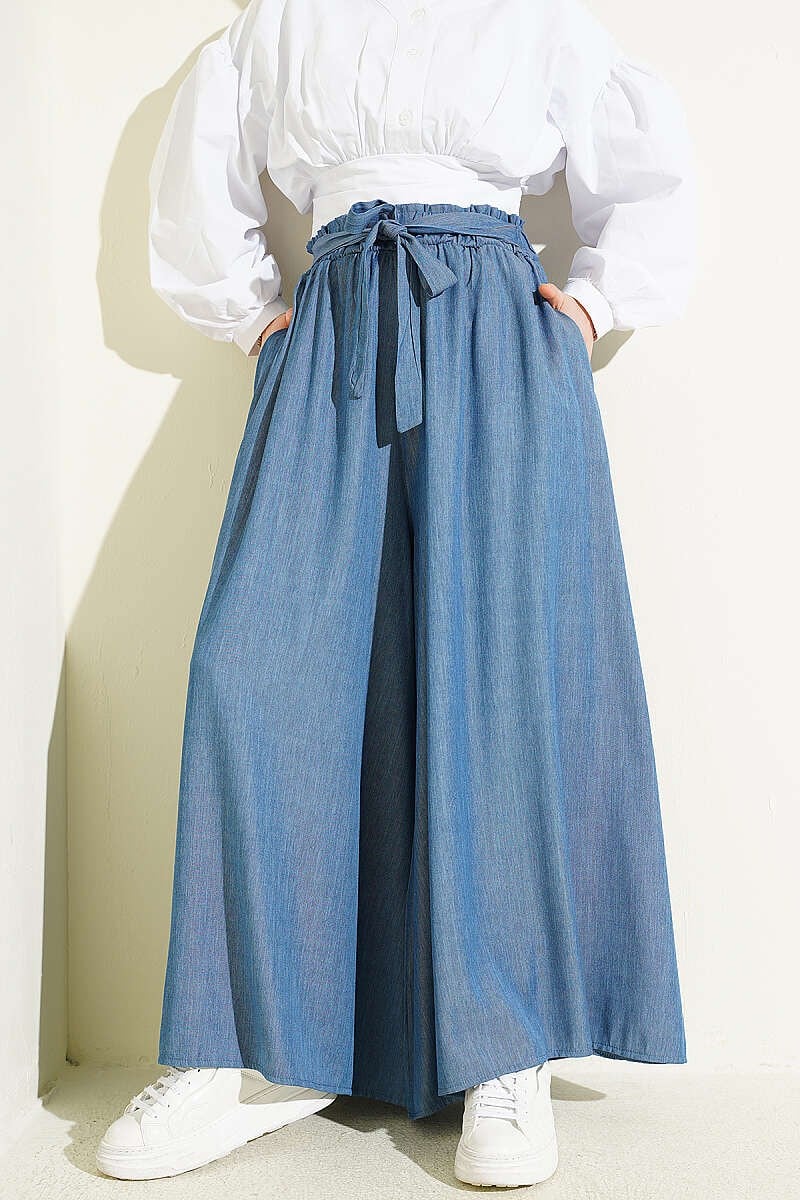 With its wide and flowing oversized cut, this pair of trousers offers a modern look while maximizing freedom of movement and providing all-day comfort. The high-waisted design, combined with the elegant drawstring and belt detail at the waist, stylishly accentuates your silhouette. Thanks to its functional side pockets and flowing fabric, it's a versatile piece that can be effortlessly combined with both sneakers and classic pieces. With its high-quality fabric and timeless design, it's the ideal choice to add a sophisticated and comfortable touch to your everyday style. Model Information: Height: 167 cm, Chest: 84 cm, Waist: 65 cm, Hips: 95 cm. The product on the model is size S/M.