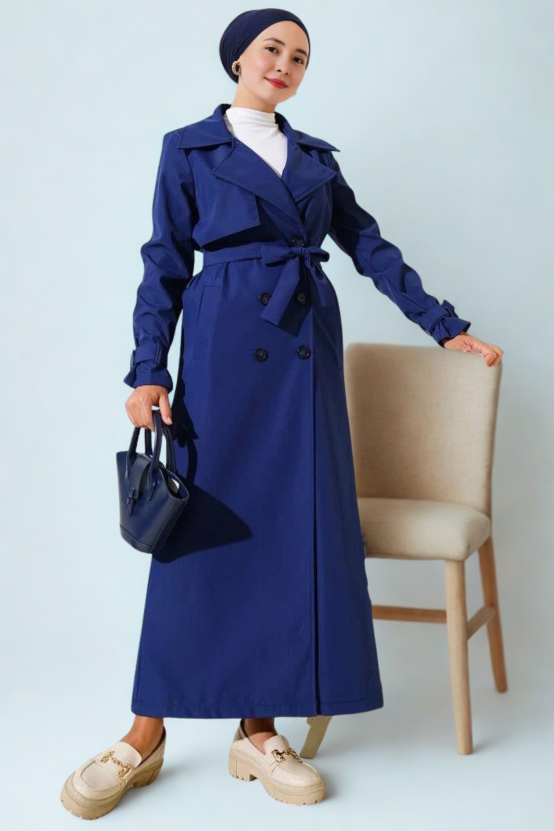 Piece Detailed Ankle Belt Trench Coat Navy Blue (8900-2460-669151)