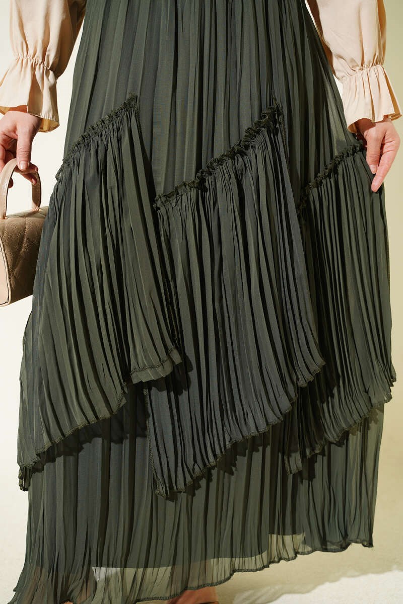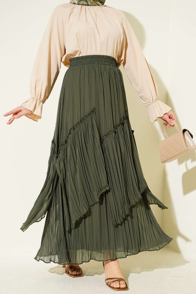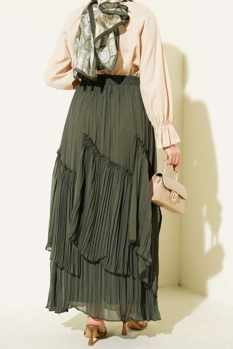 Pleated Chiffon Skirt in Khaki