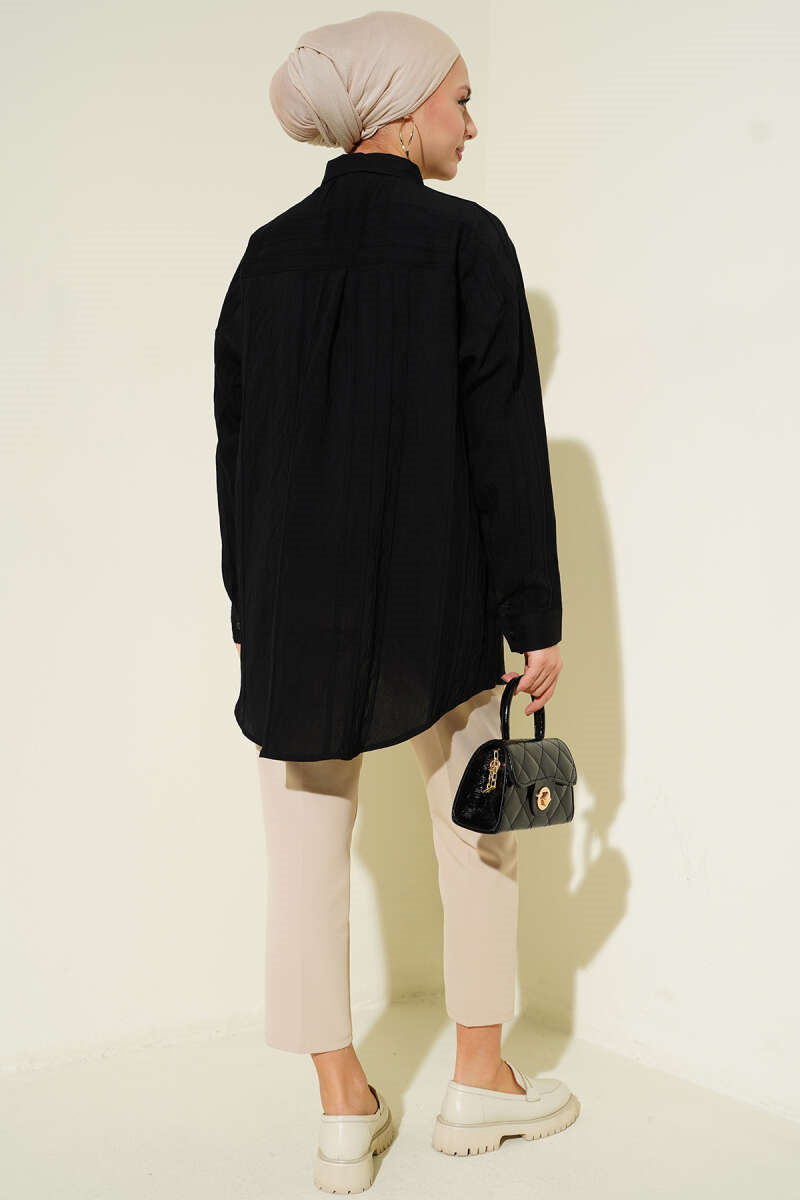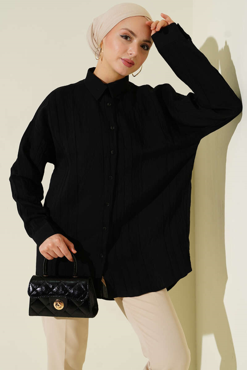 Honeycomb Striped Oversize Shirt Black (0674-861-725056)