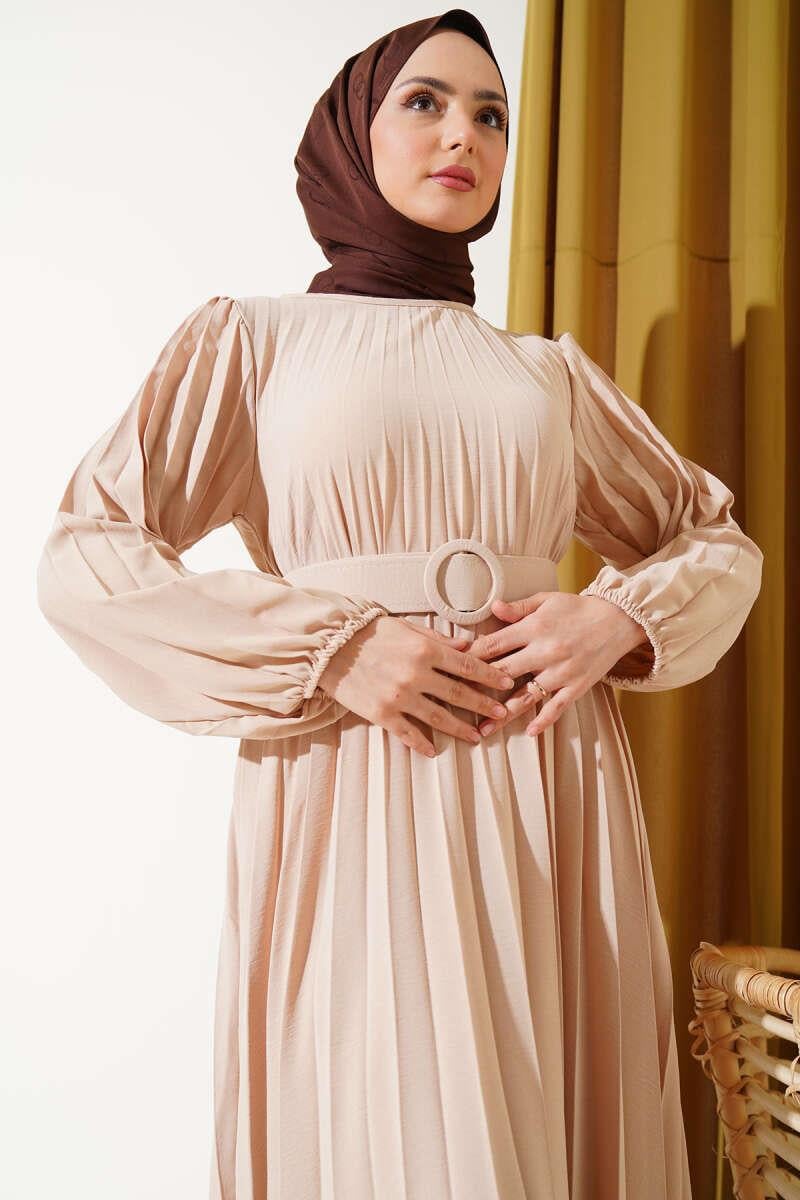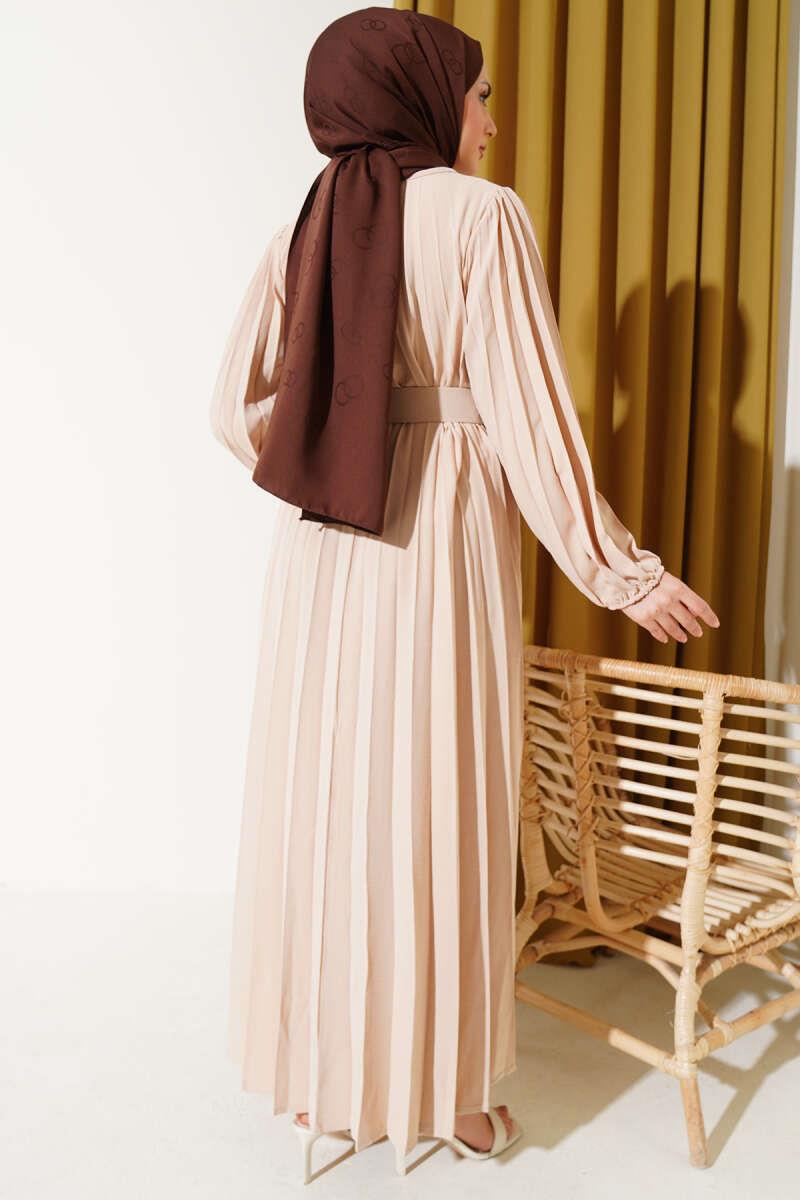 Pleated Belted Aerobin Dress Beige (0026-9897-602562)