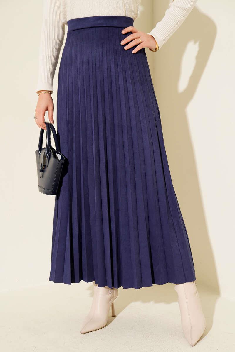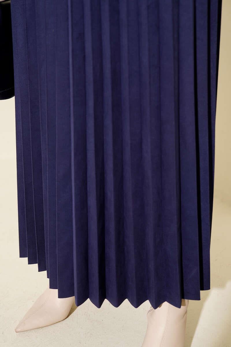 Pleated Suede Skirt Navy Blue (0428-1694-684293)