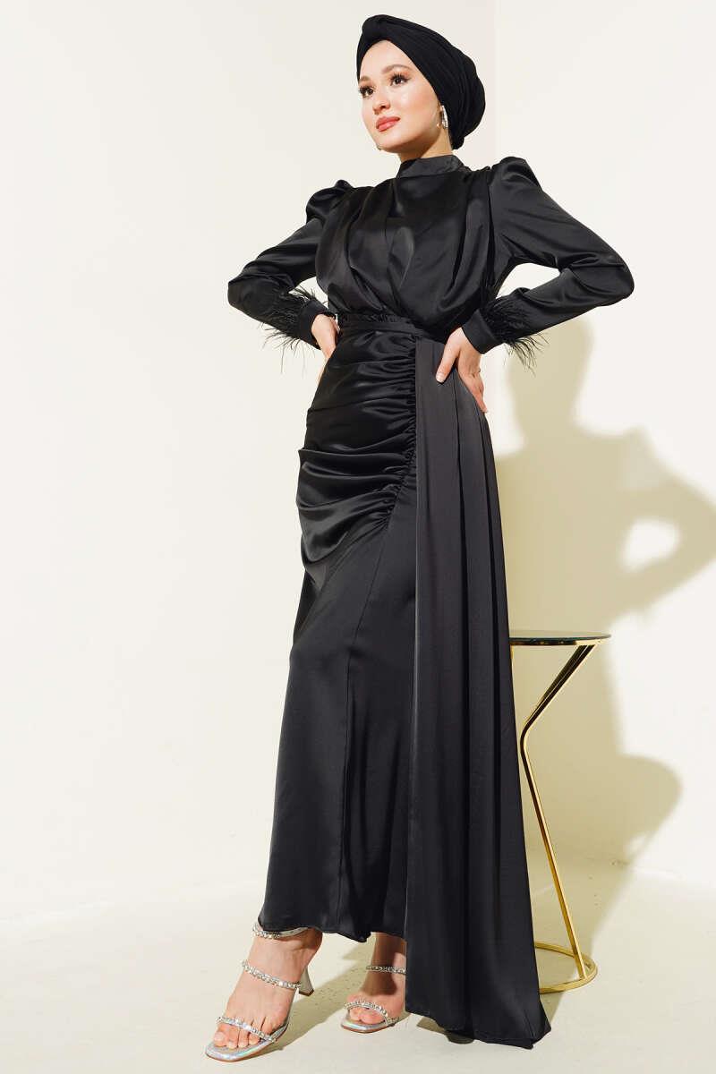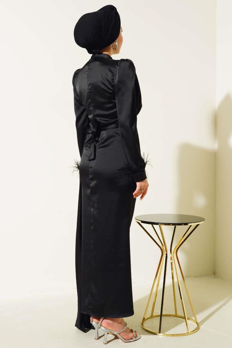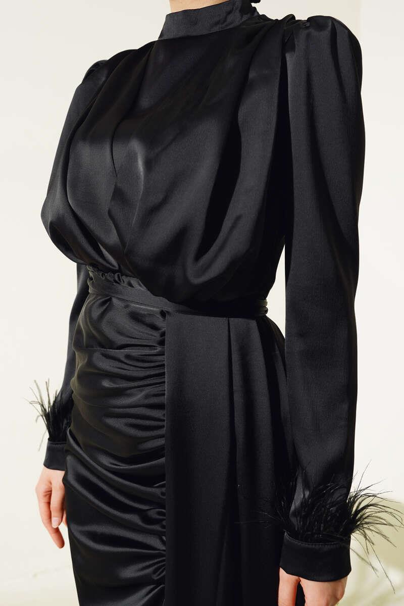 Pleated Feathered Cuff Dress Black (0493-4593-556108)