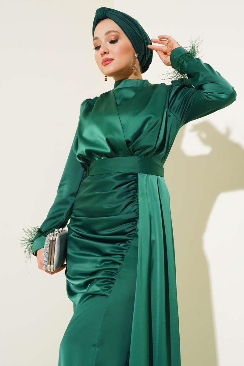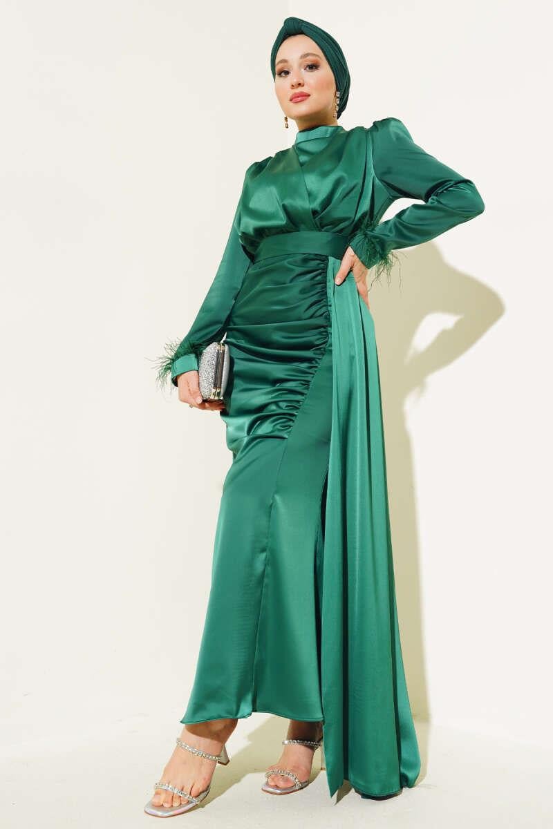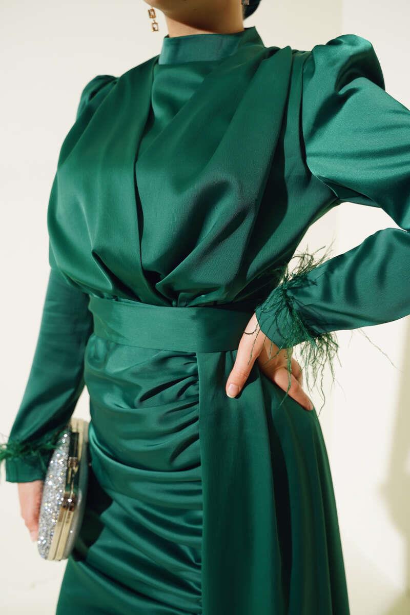 Pleated Feather Cuff Dress Emerald (0493-4593-559615)