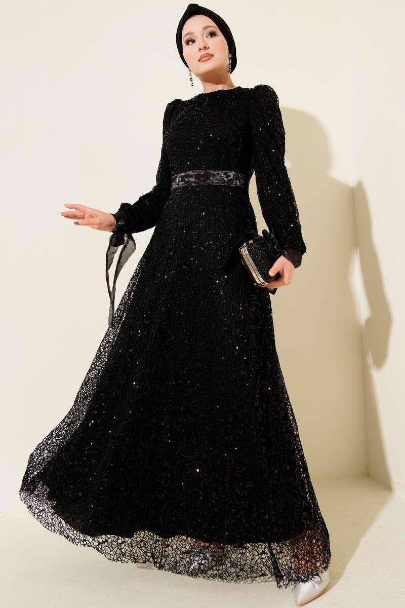 Sparkling Sequined Evening Dress Black (8163-4448-685327)