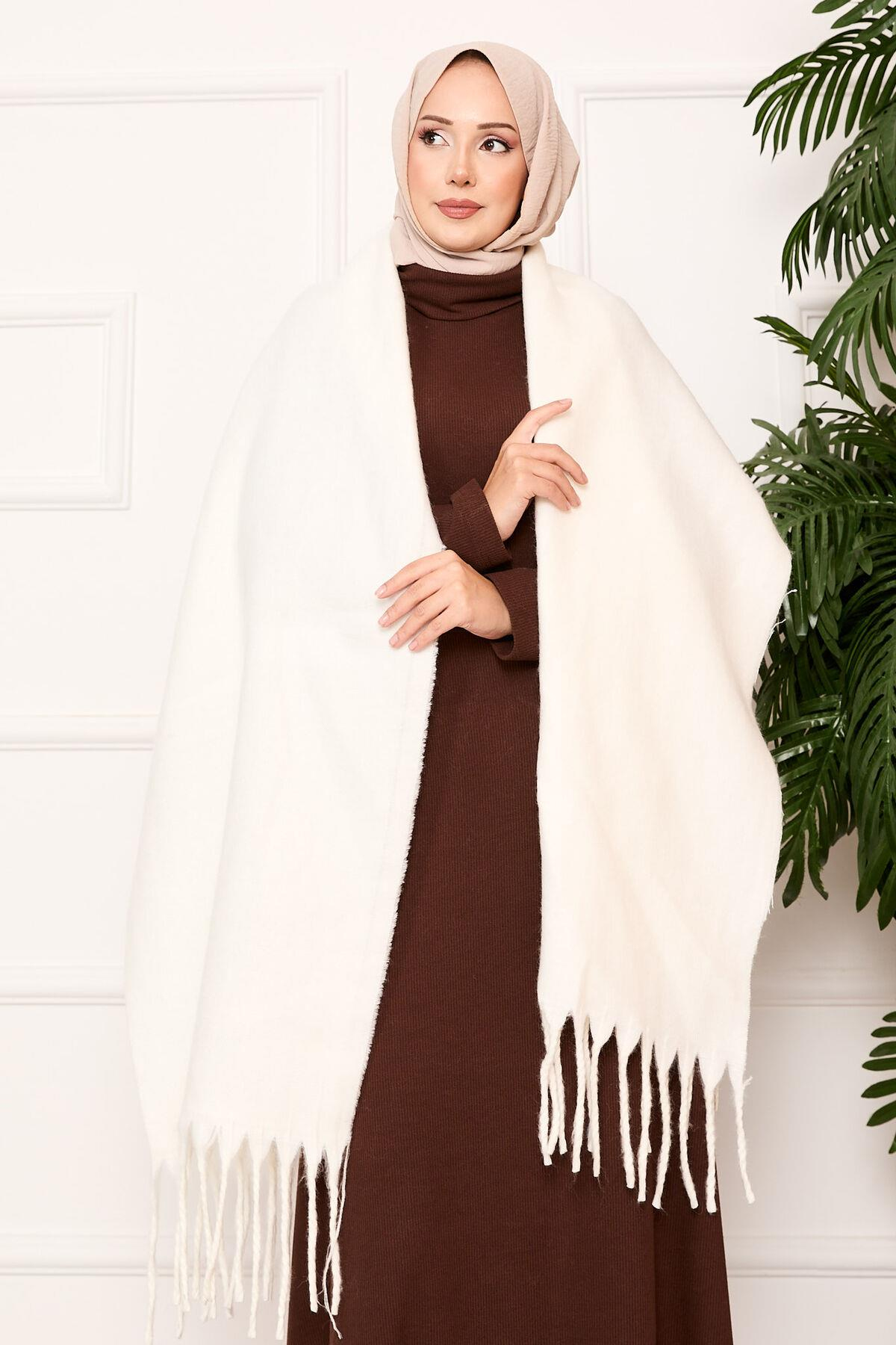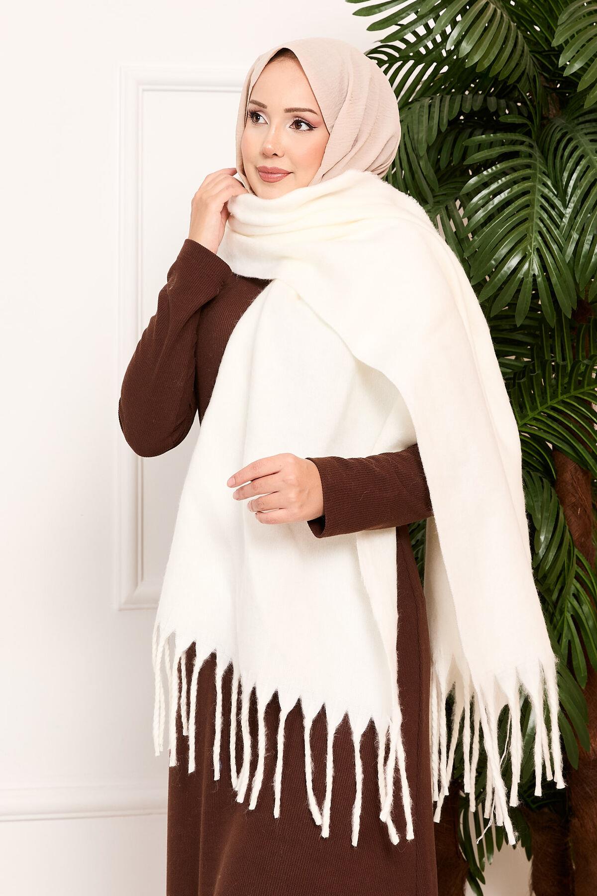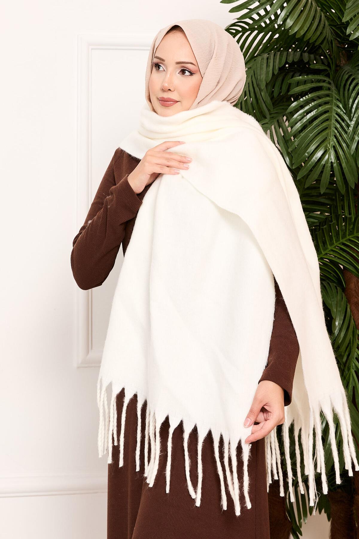 Tasseled Shoulder Shawl Ecru (125M01011047R14STD)