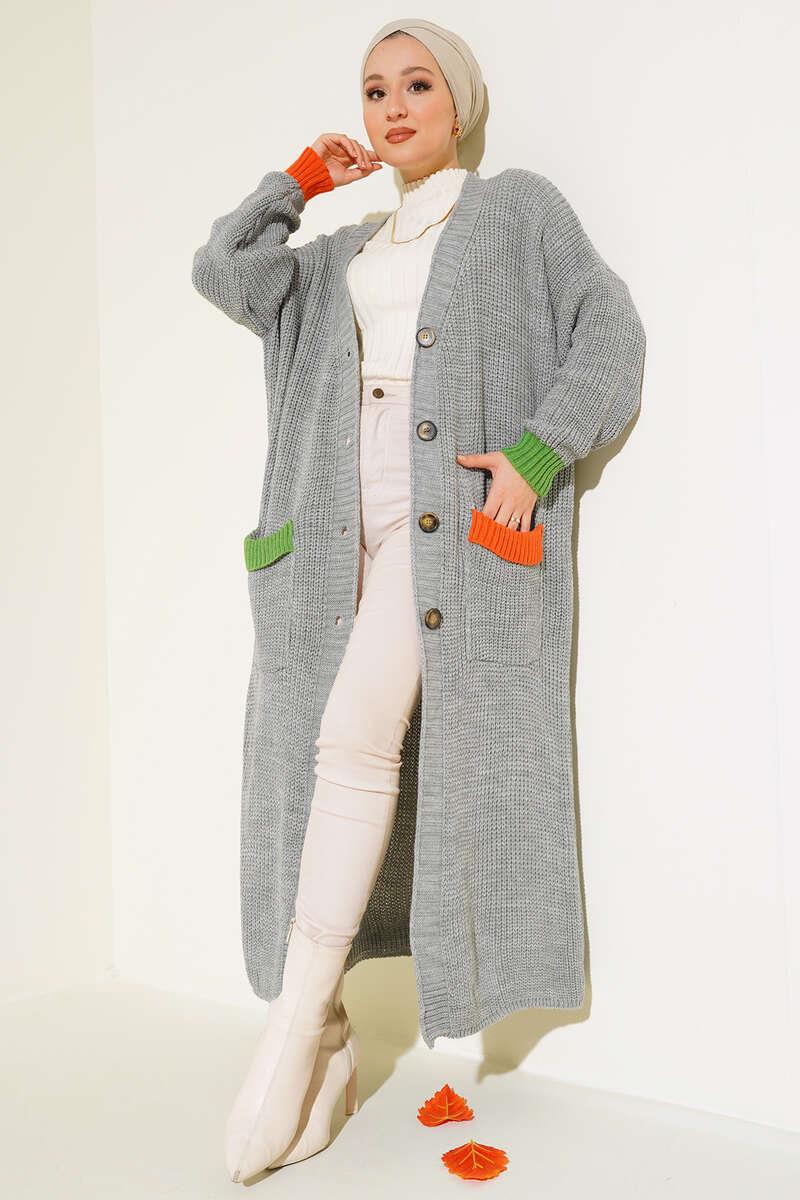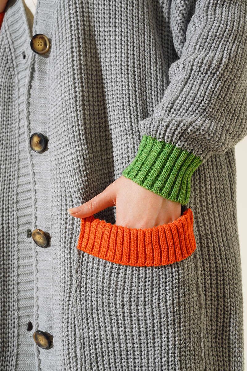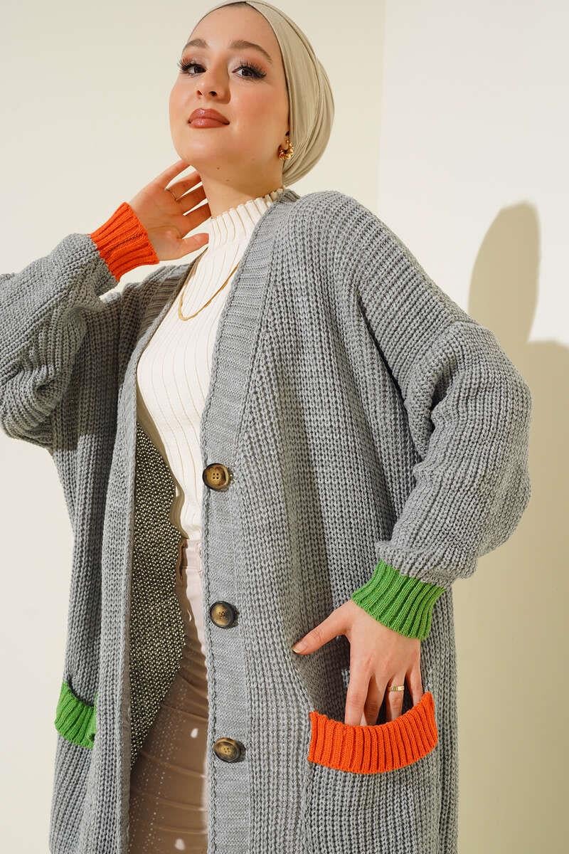Casual Gray Cardigan with Color Details (0875-2449-336852)