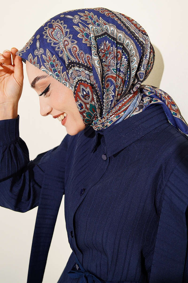 Retro Pattern Elegance Scarf (Navy Blue) (0141-5316-752076)