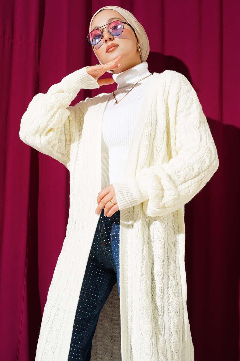 Hair Knit Long Knitwear Cardigan Ecru (0875-4408-669548)
