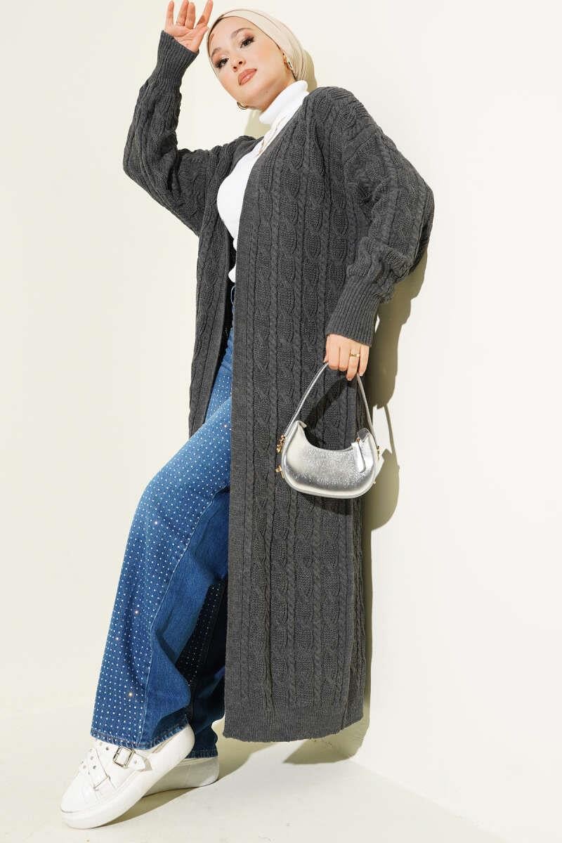 Hair Knit Long Knitwear Cardigan Smoke (0875-4408-669549)