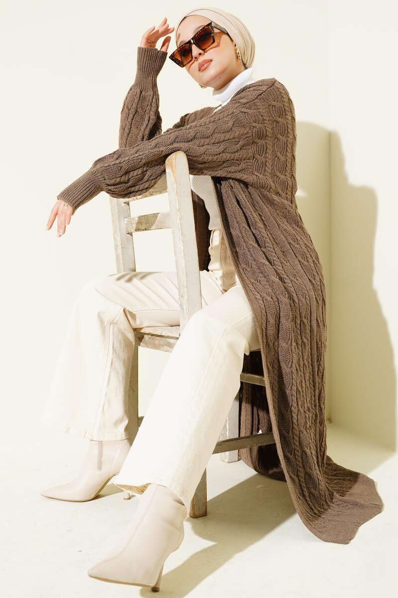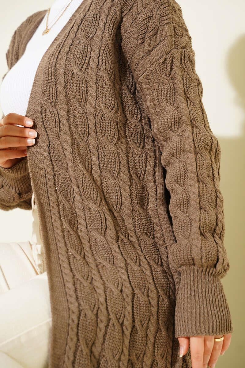 Hair Knit Long Knitwear Cardigan Brown (0875-4408-669552)