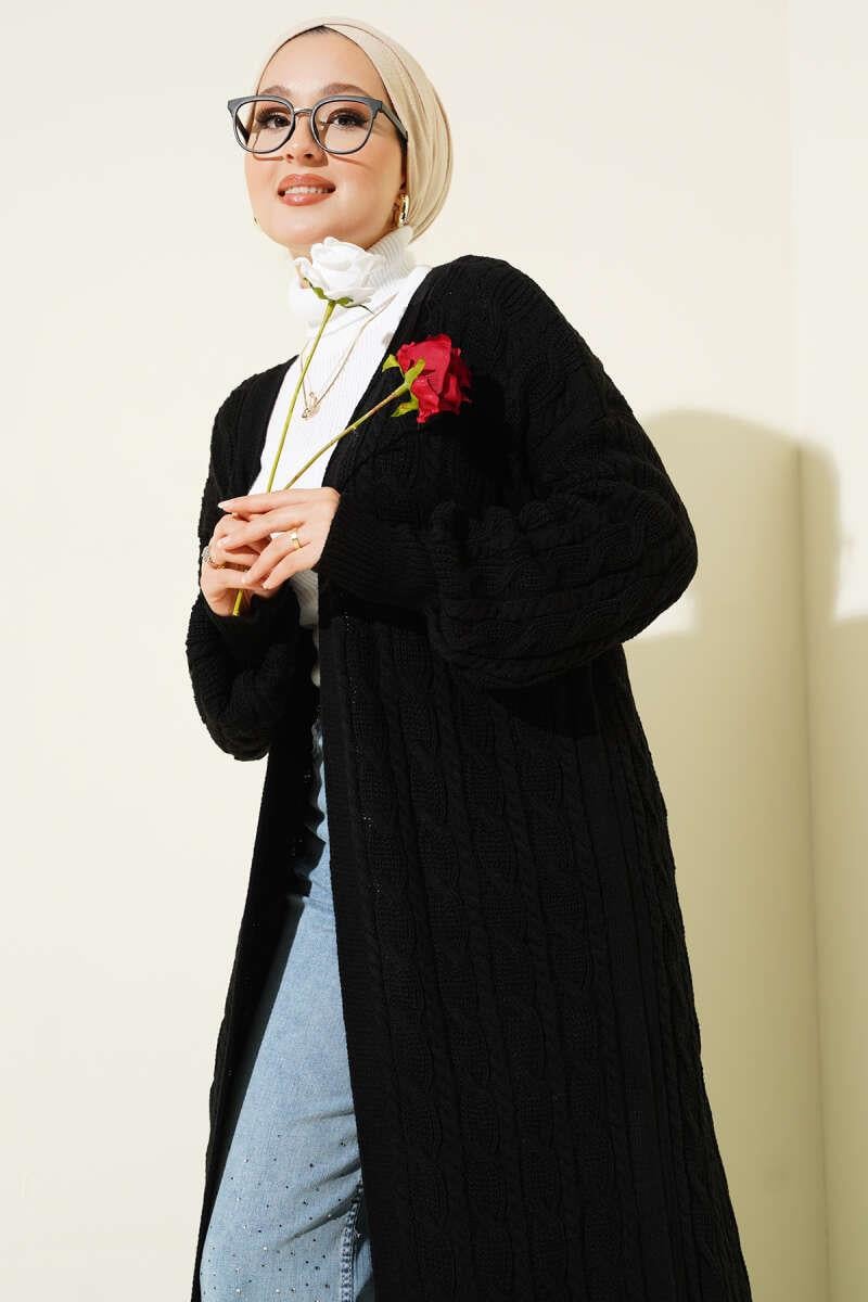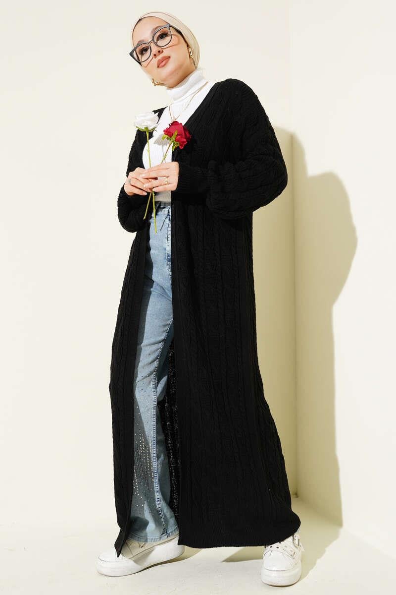 Hair Knit Long Knitwear Cardigan Black (0875-4408-669555)
