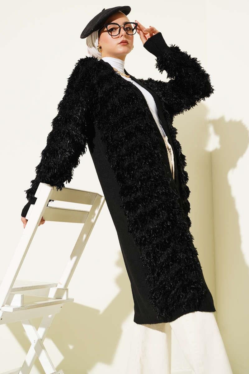 Fringed Knit Cardigan Black (8378-25539-674438)