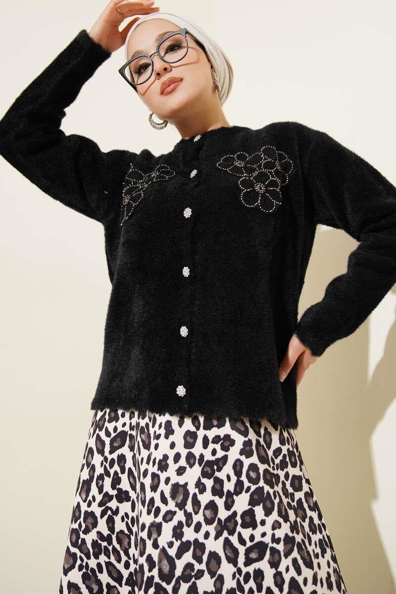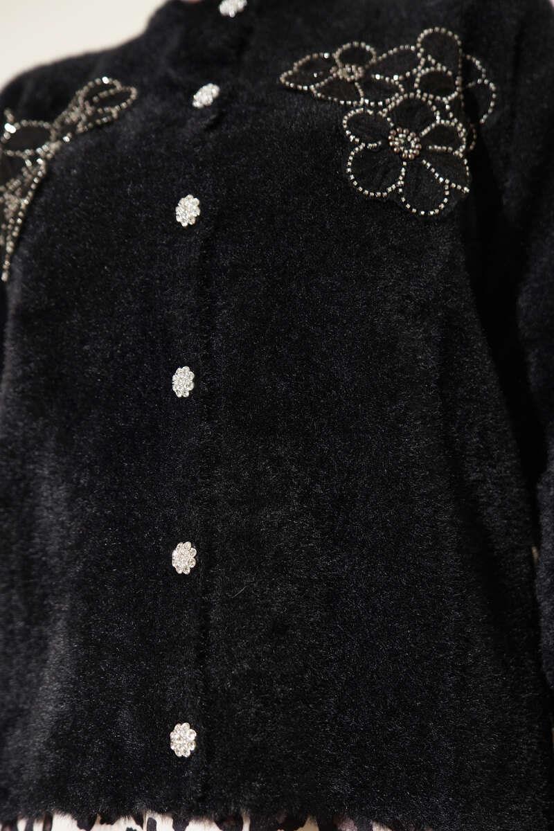 Bearded Floral Motif Cardigan Black (0853-2634-672990)