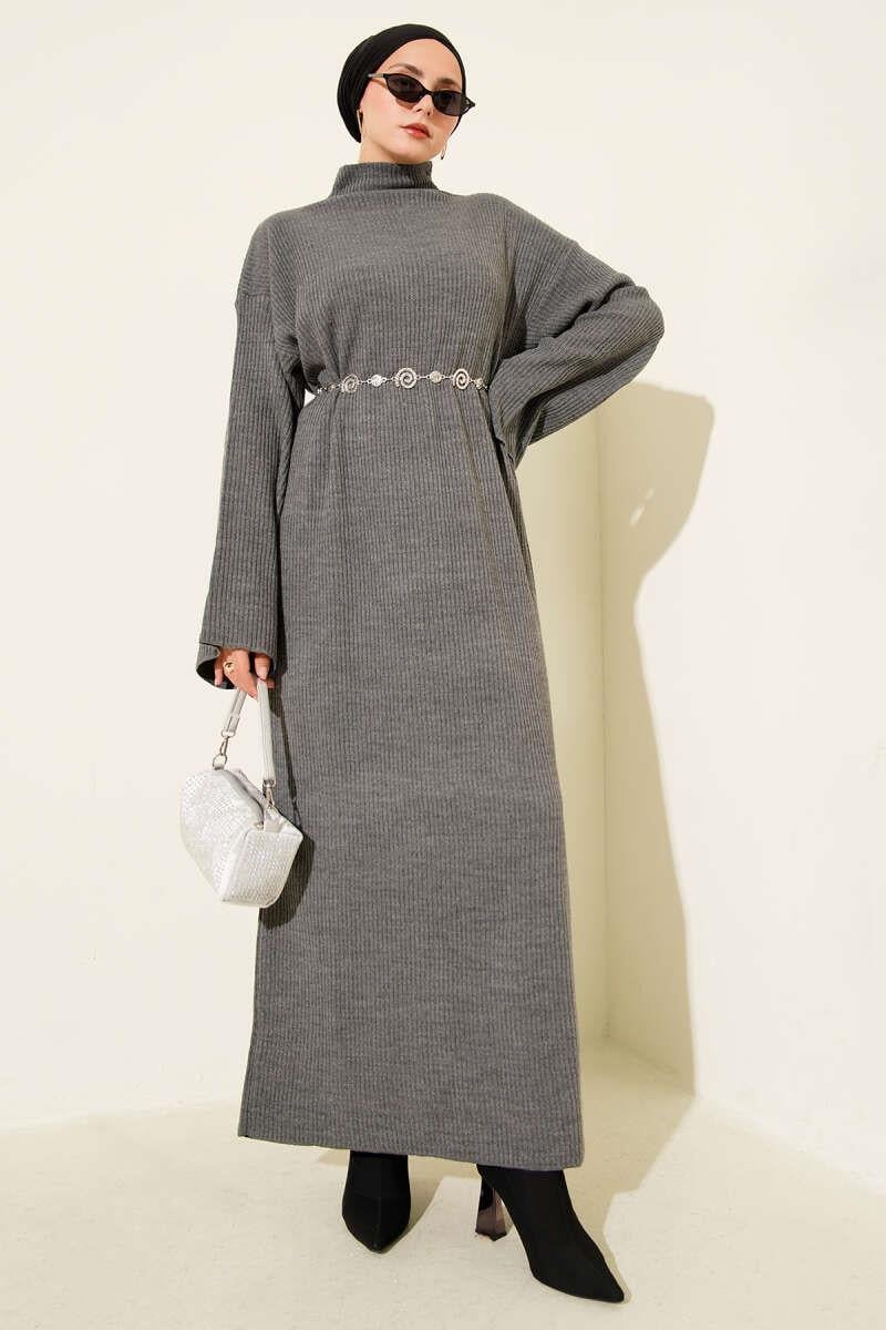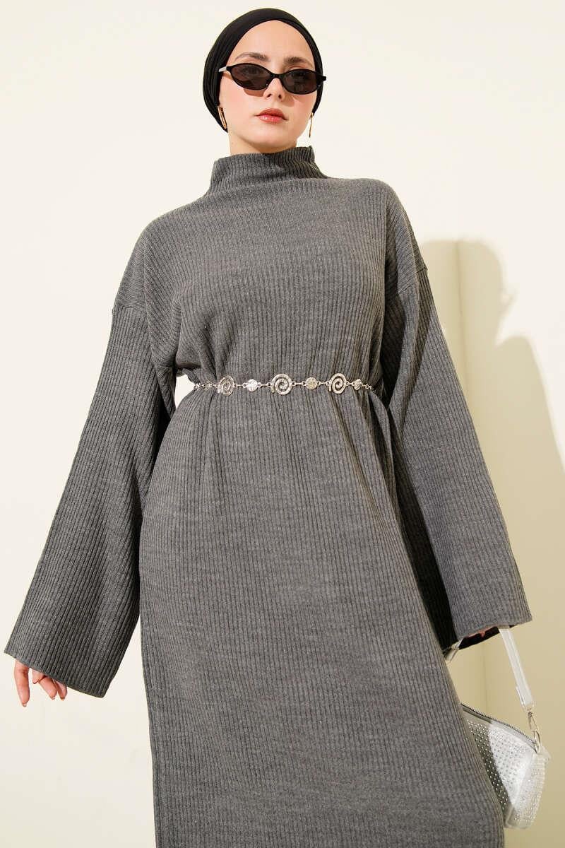 Loose Belted Knit Dress in Smoke (0026-2100-670178)
