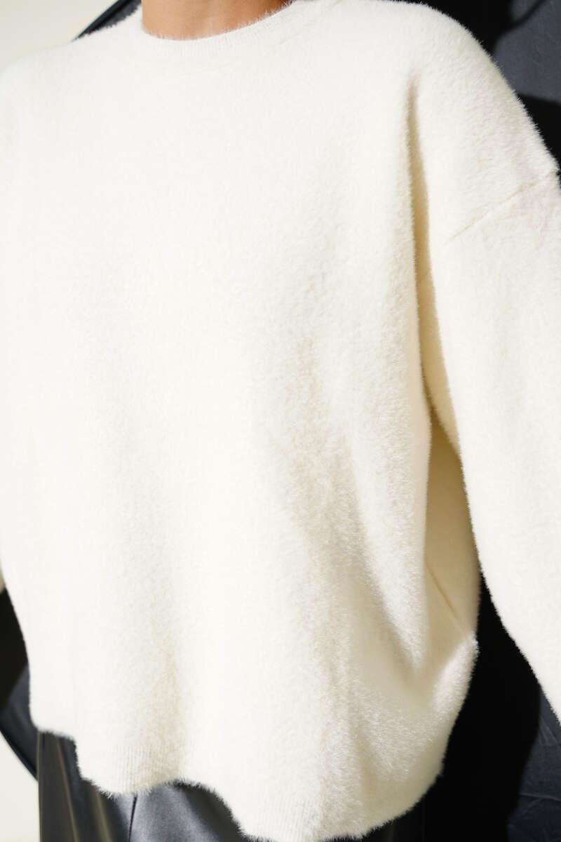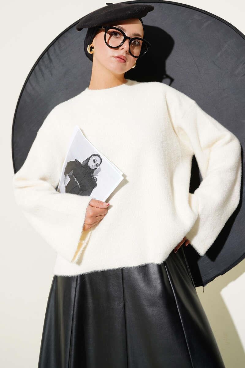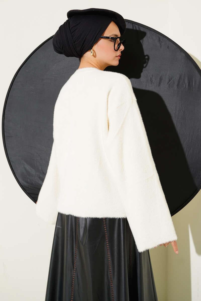 Casual Bearded Basic Knitwear Sweater Ecru (0853-2618-673023)