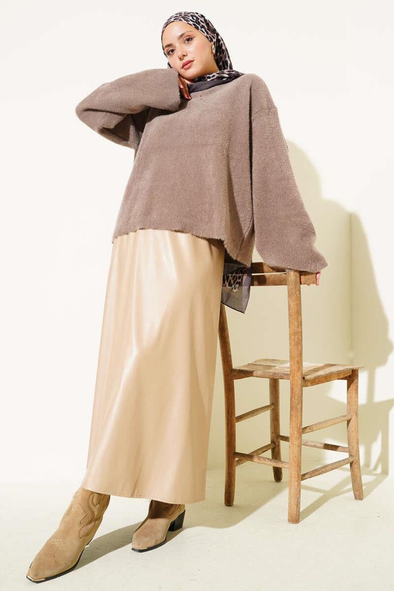 Casual Bearded Basic Knitwear Sweater Mink (0853-2618-673028)