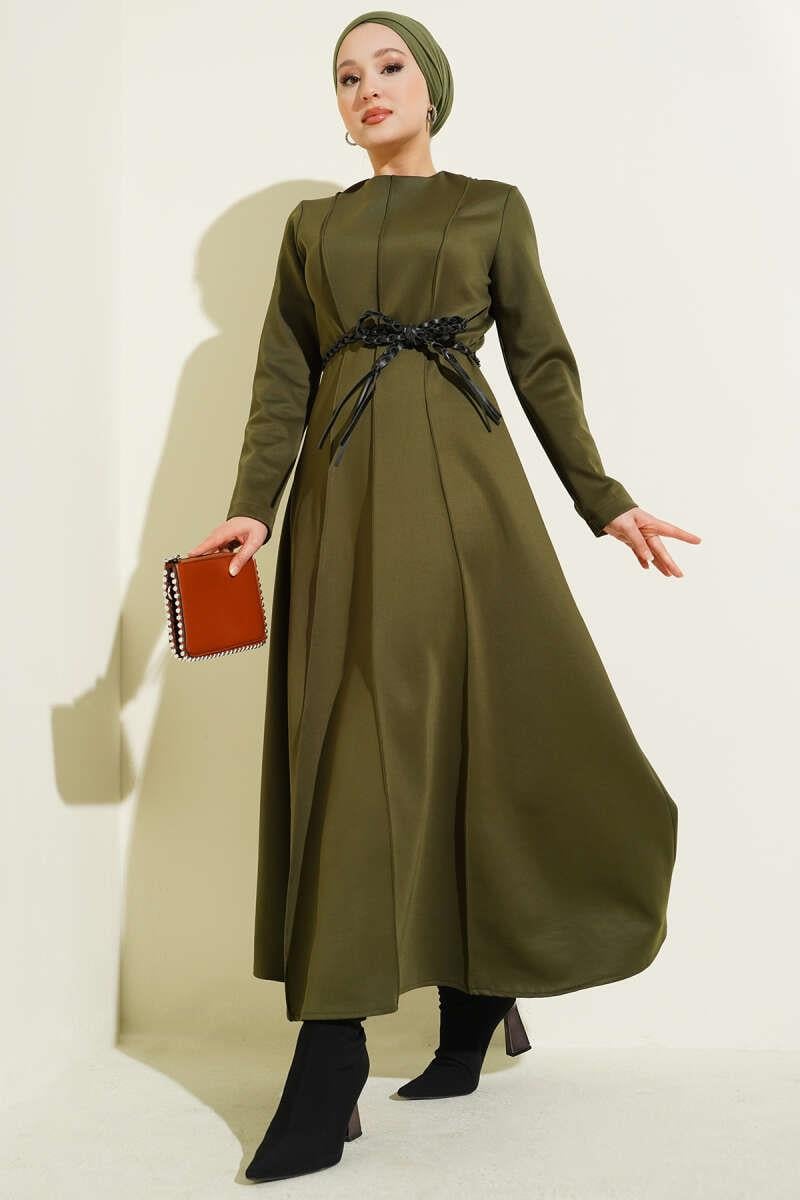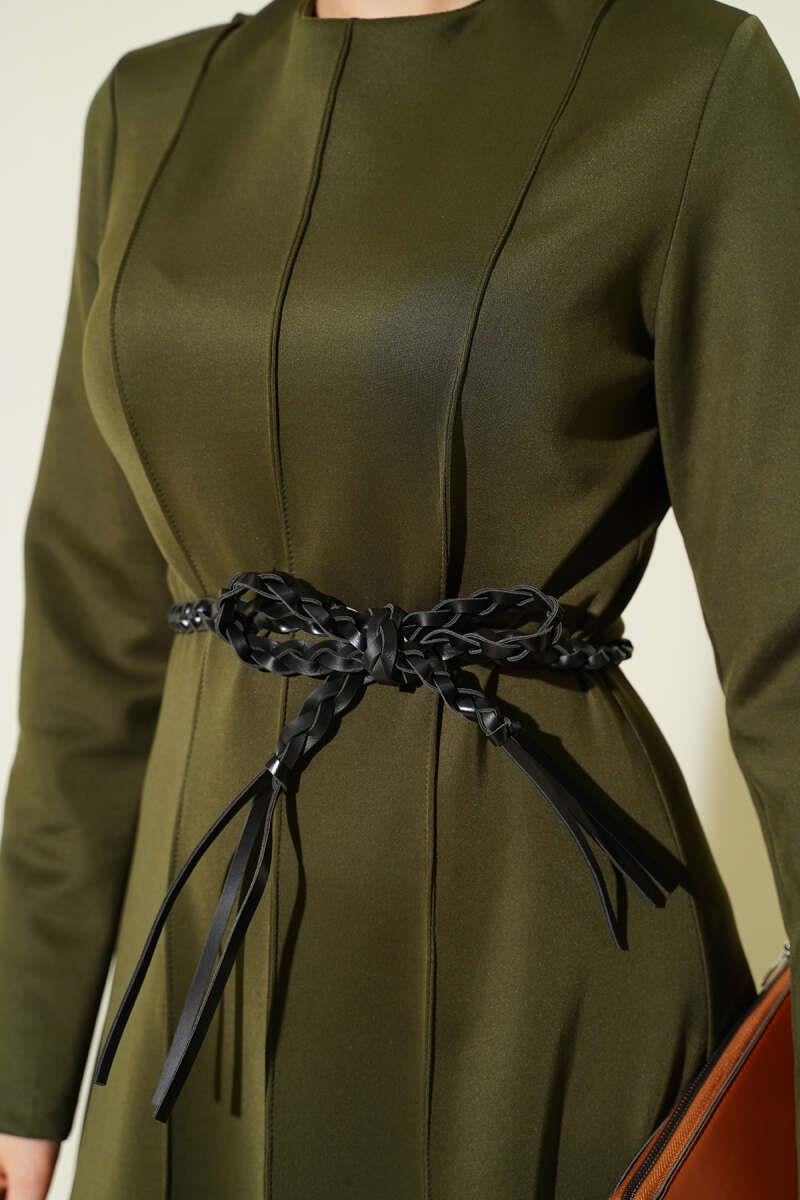 Scuba Leather Belted Dress Khaki (8209-2010-683469)