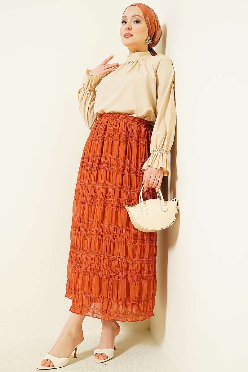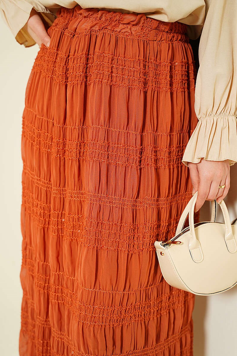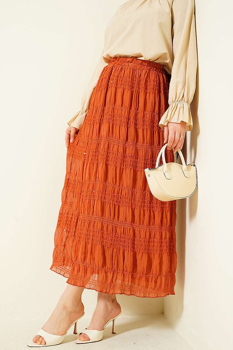 Striped Gathered Sequin Chiffon Skirt in Terracotta (0999-7007-749215)