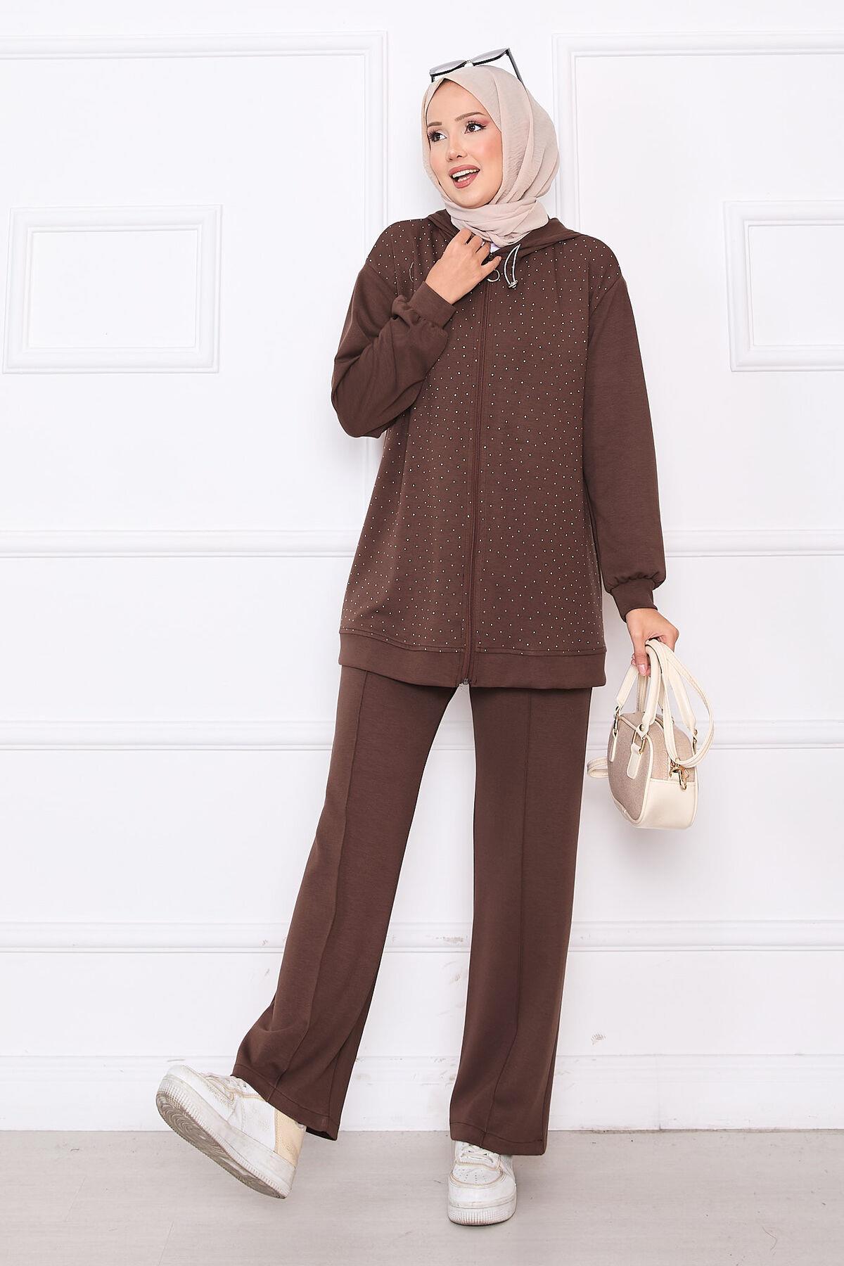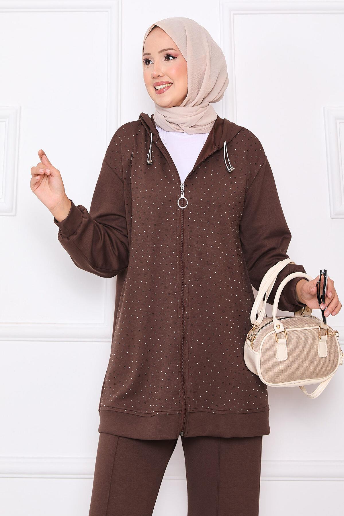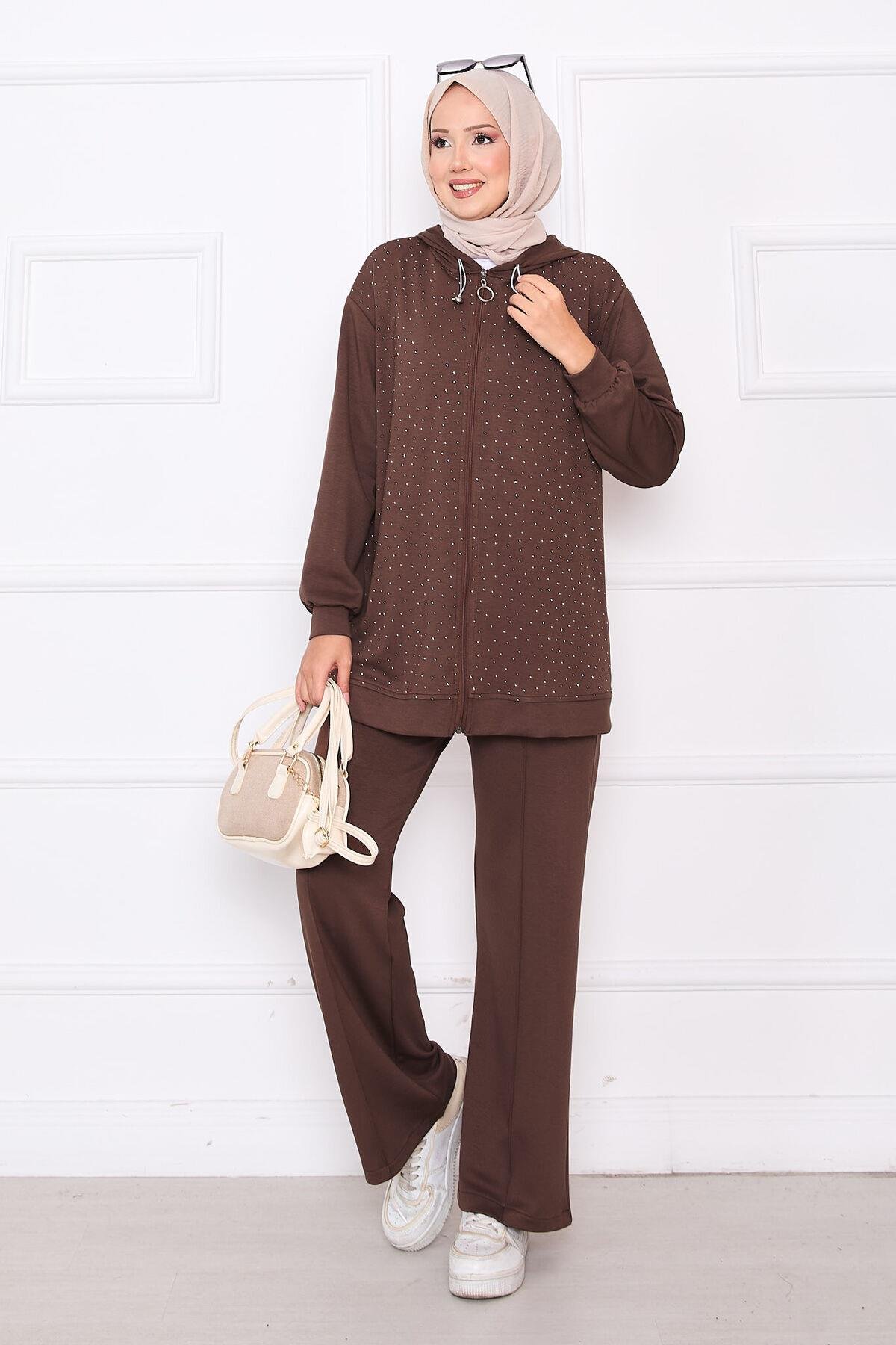 Loysha 2 Piece Set Brown with Sprinkled Stones and Zipper (125M00621140R2538)