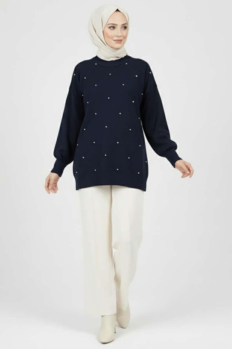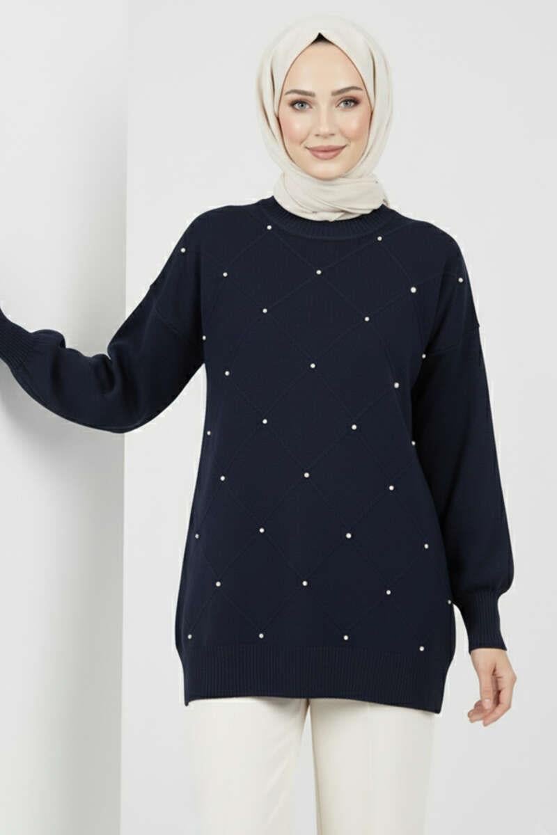 Sprinkled Stone Knit Tunic Navy Blue (0589-1013-675814)