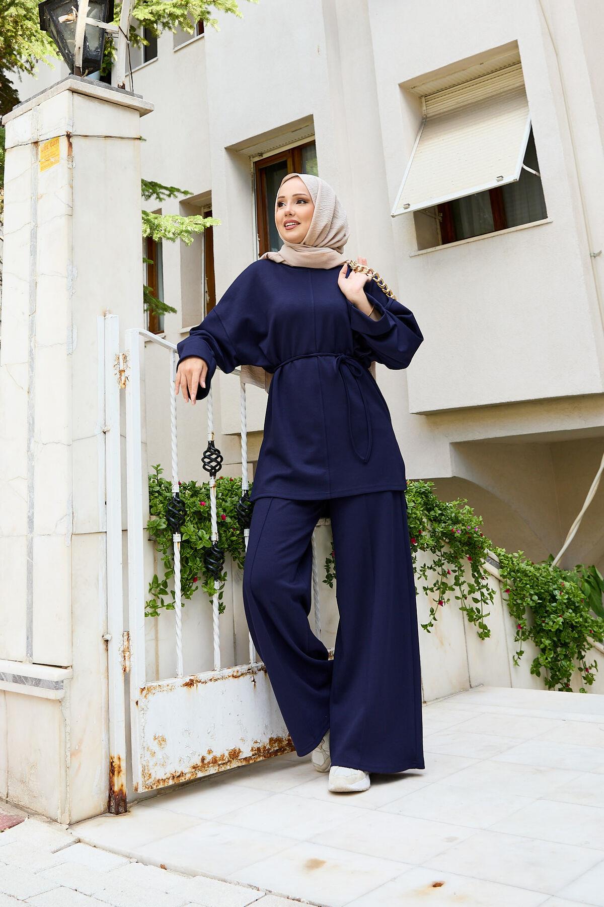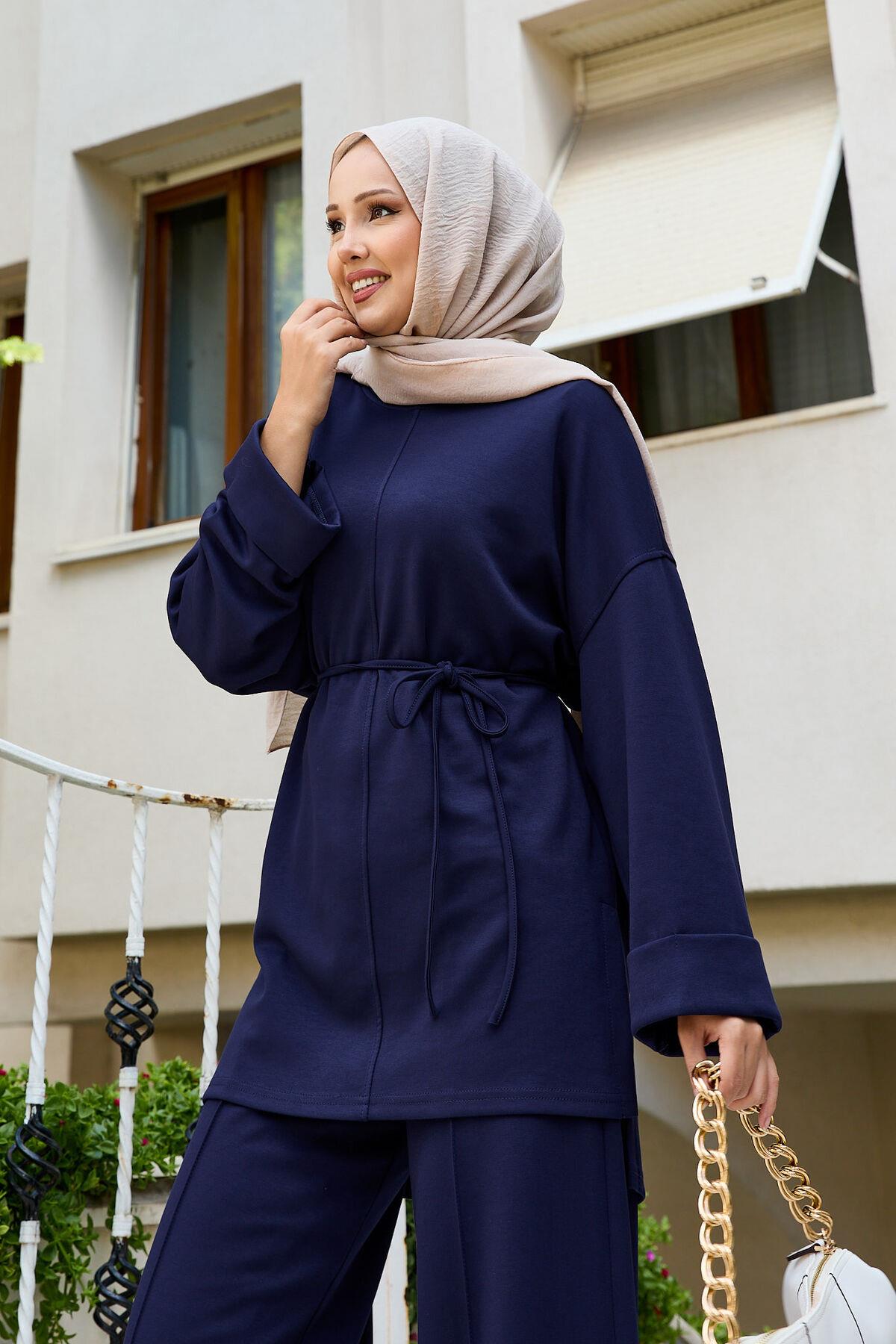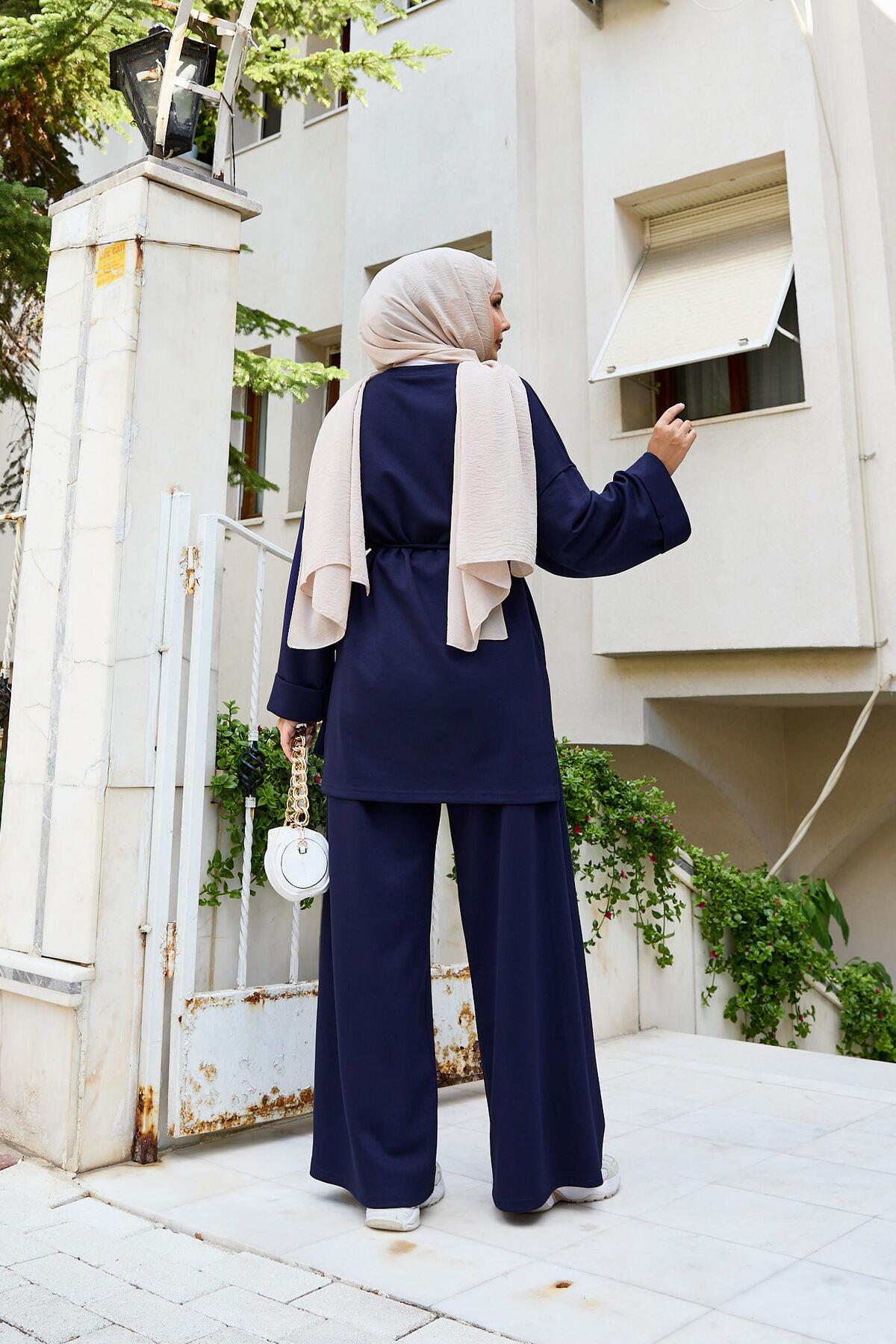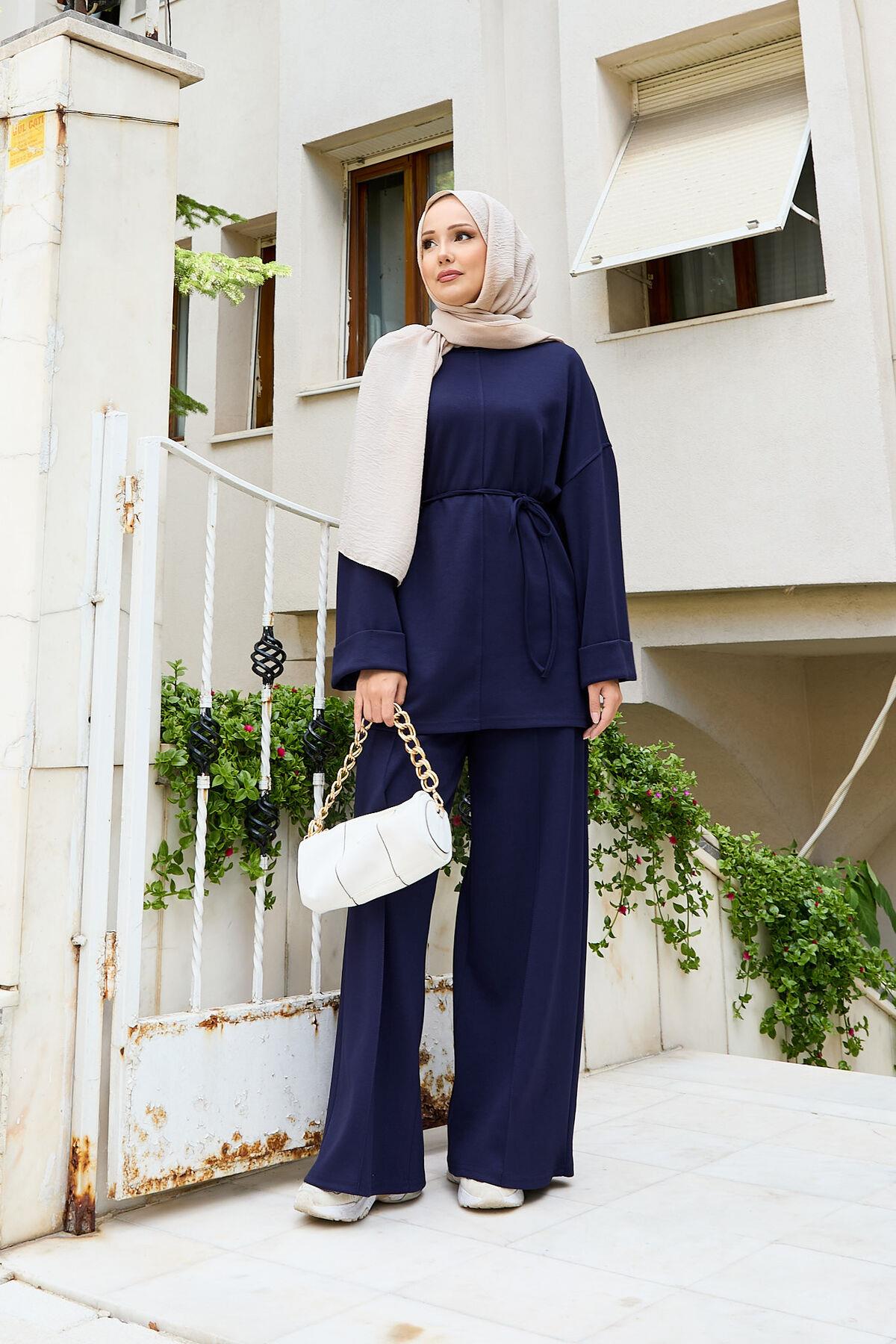 Removable Belted 2 Piece Loysha Set Navy Blue (125M00618060R33L)