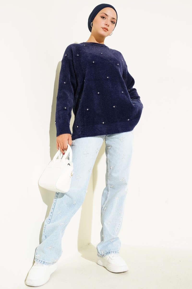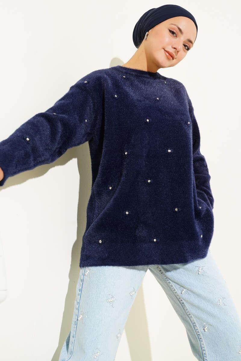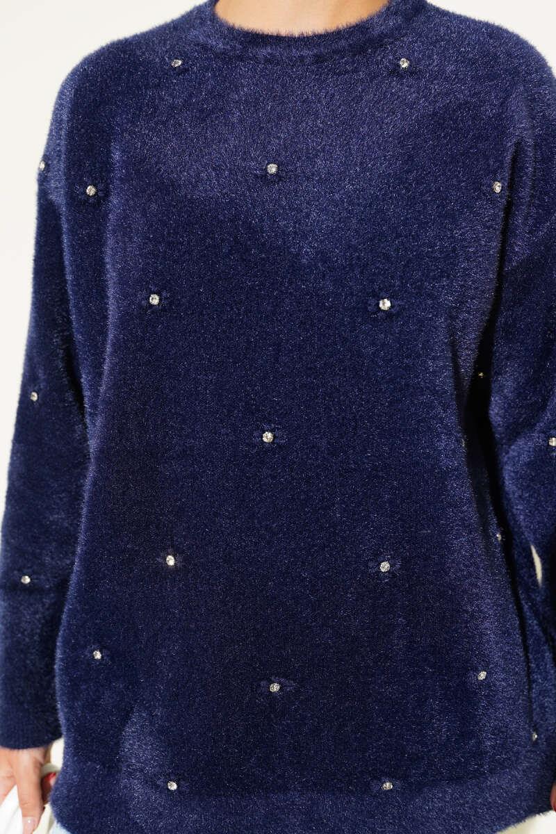 Stone Detailed Bearded Sweater Navy Blue (0853-2409-672860)