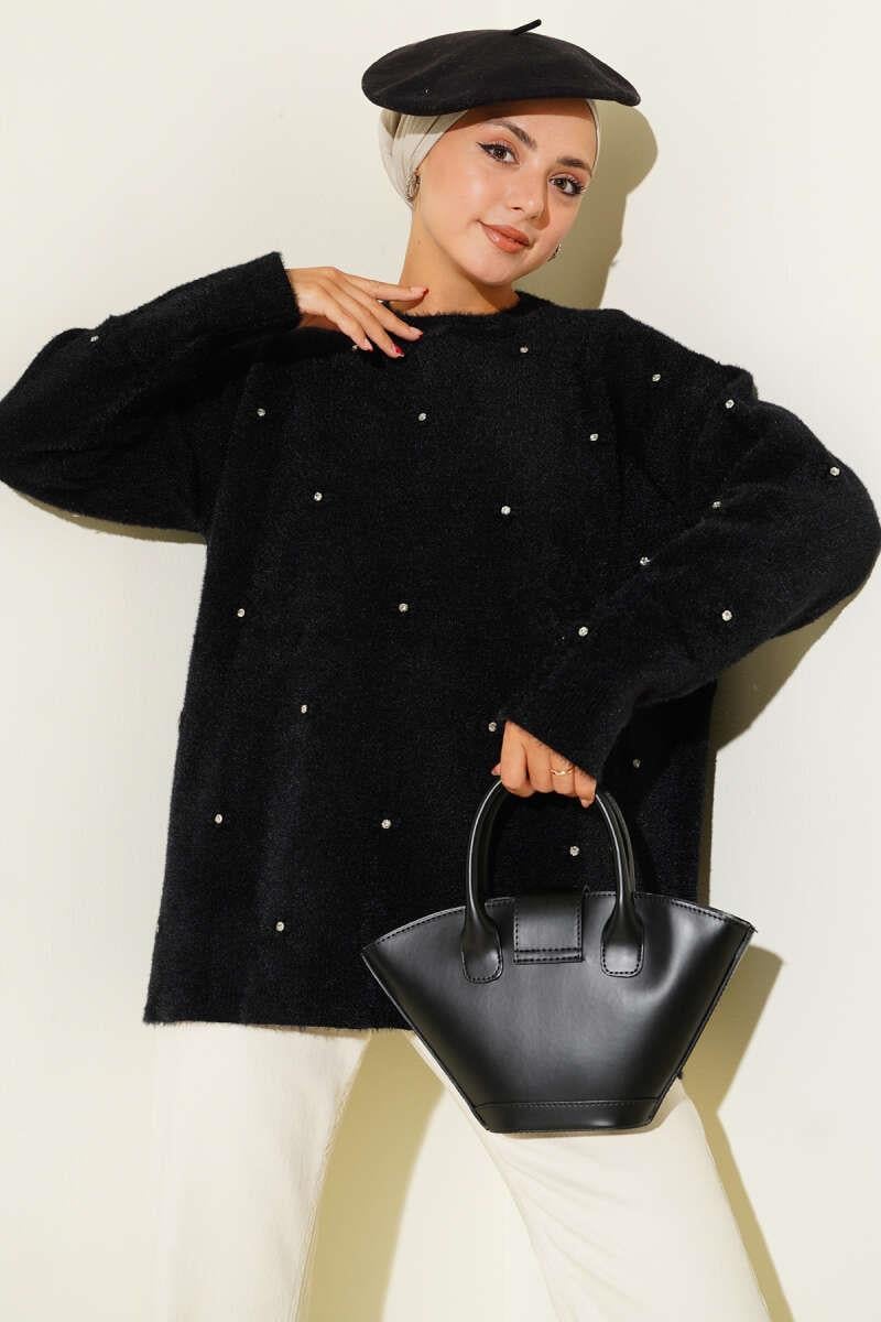 Stone Detailed Bearded Sweater Black (0853-2409-672863)