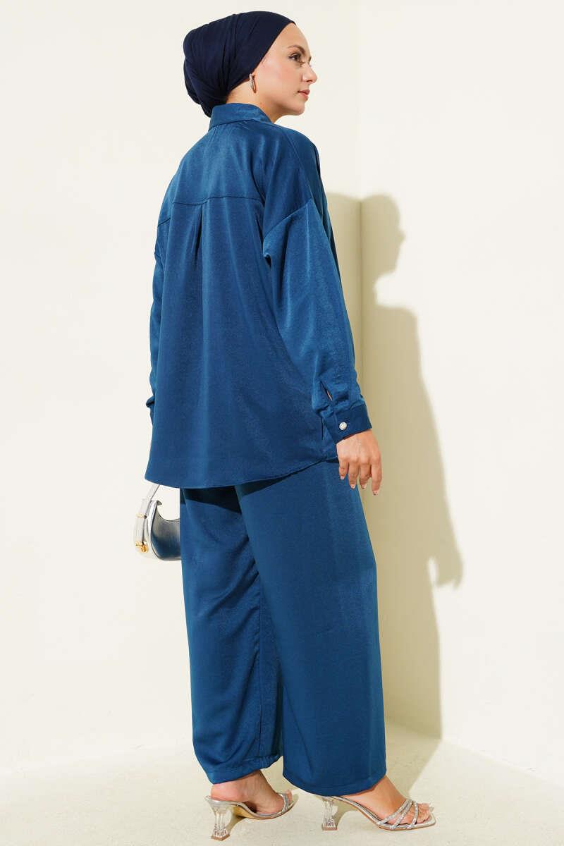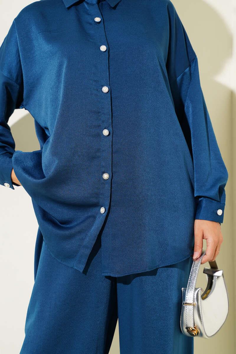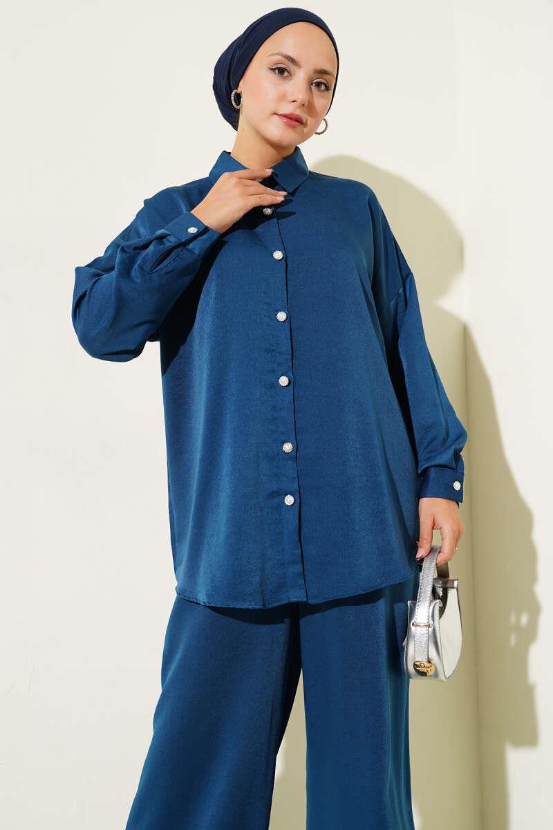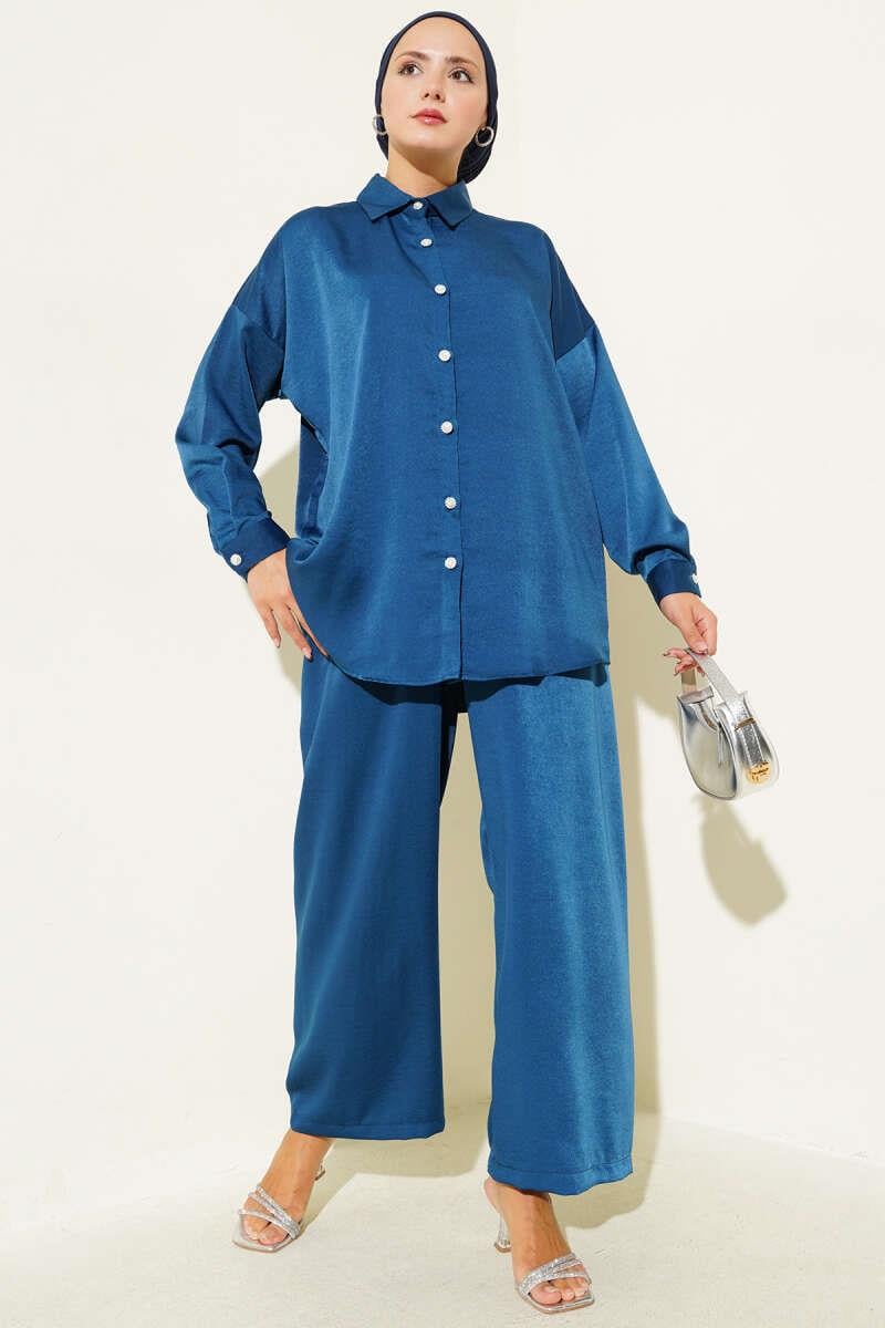 Stone Button Detailed 2 Piece Set Indigo (0853-7970-659797)