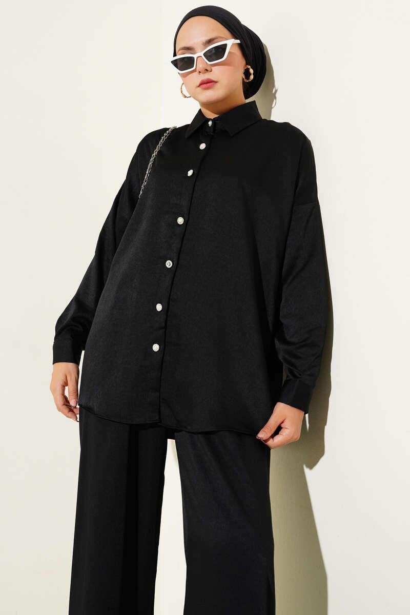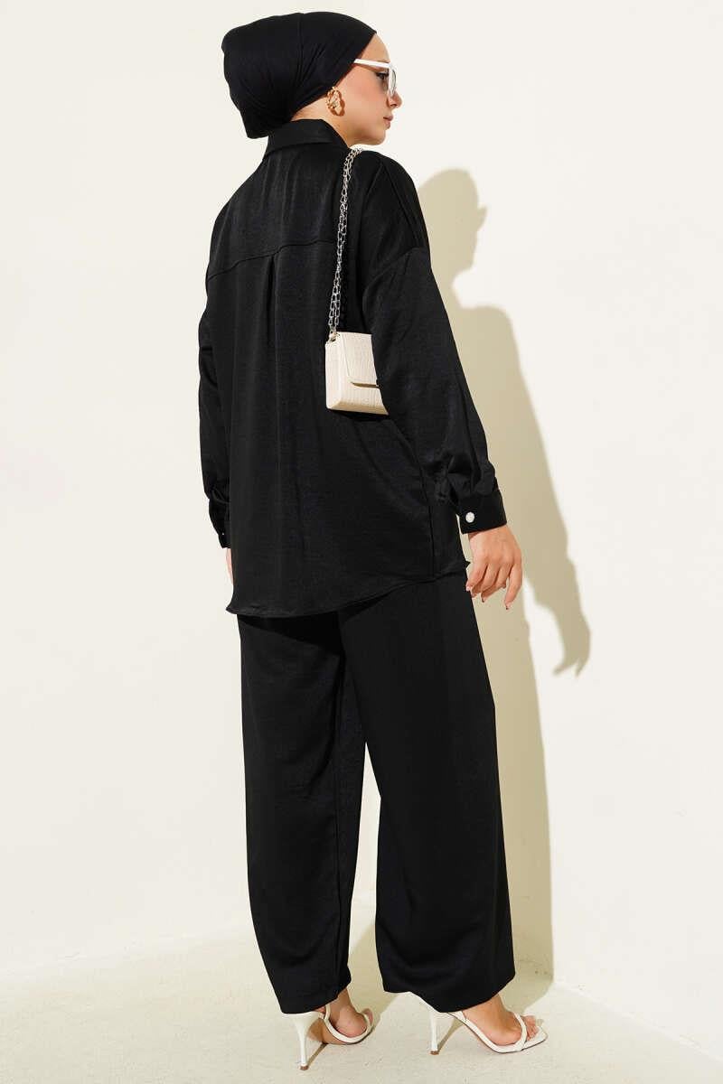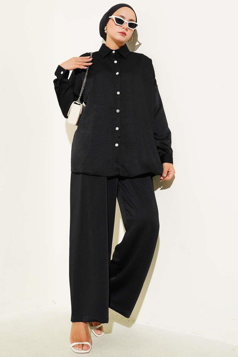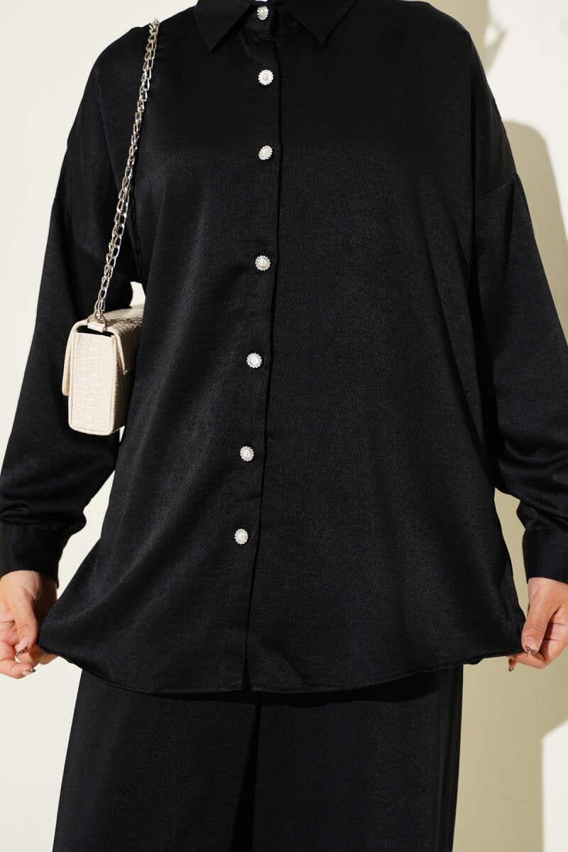Stone Button Detailed 2 Piece Set Black (0853-7970-659801)