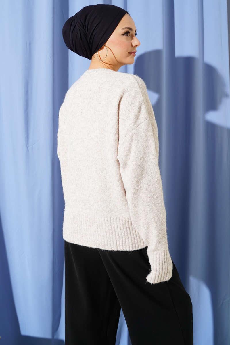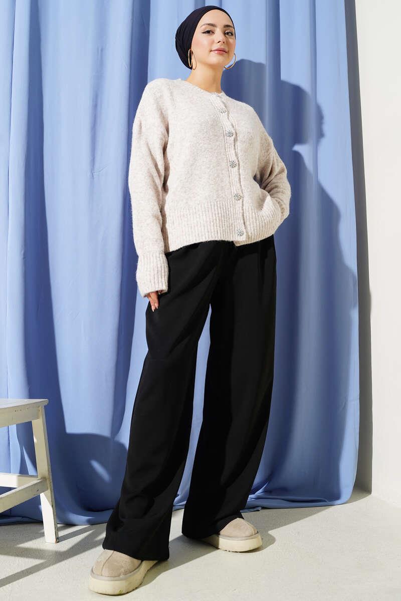 Soft Knitwear Short Cardigan with Stone Buttons, Beige (8374-0929-688386)