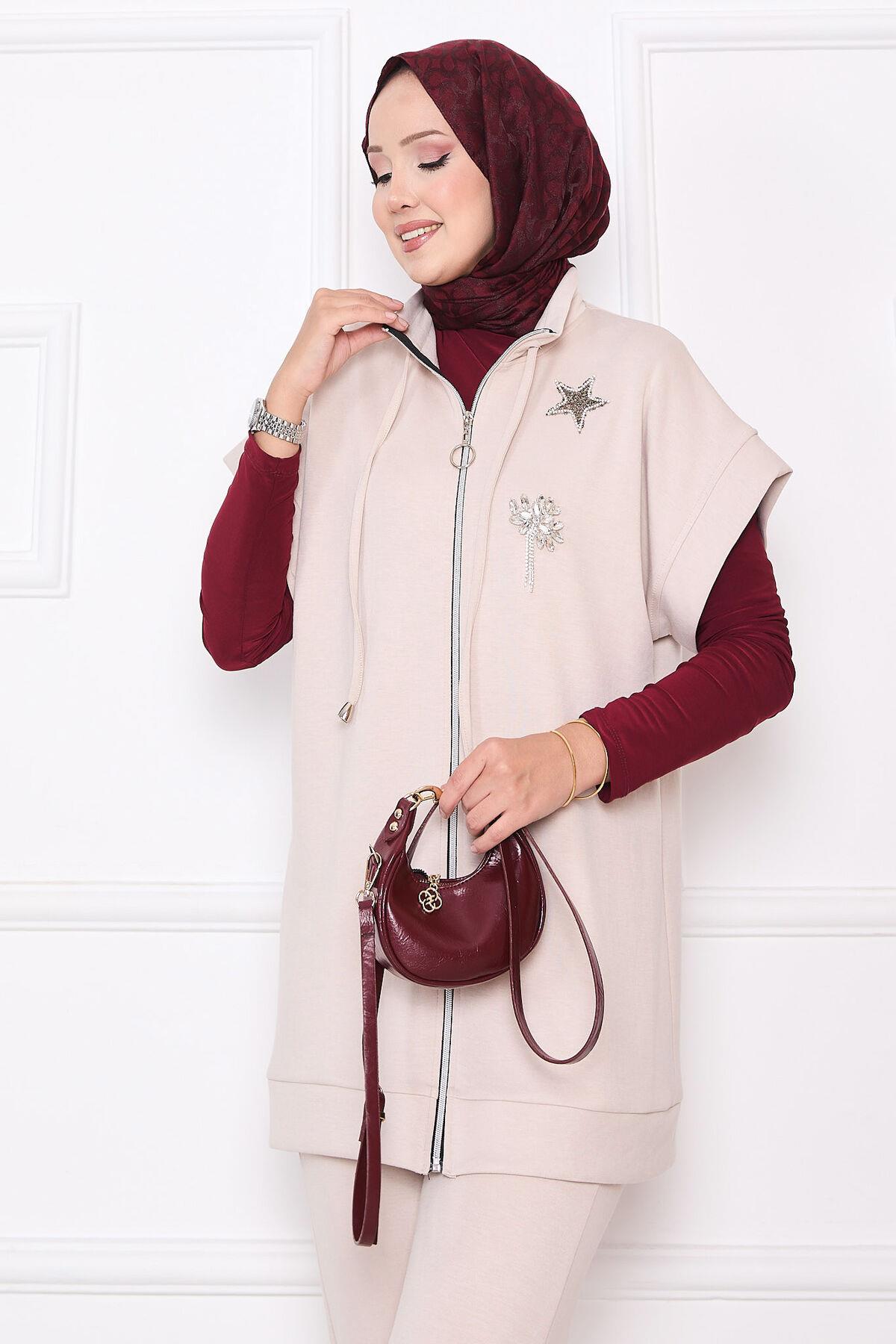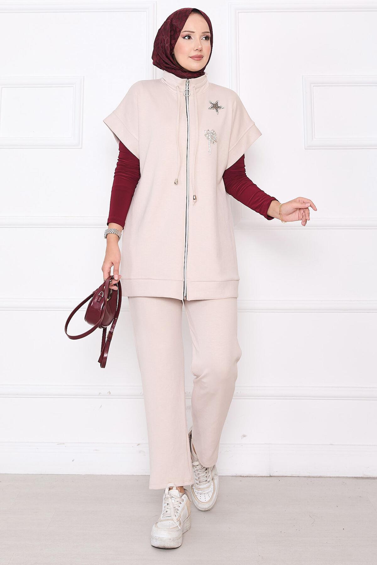 Stone Embroidered Zippered Vest Set Stone (125M00621132R5938)