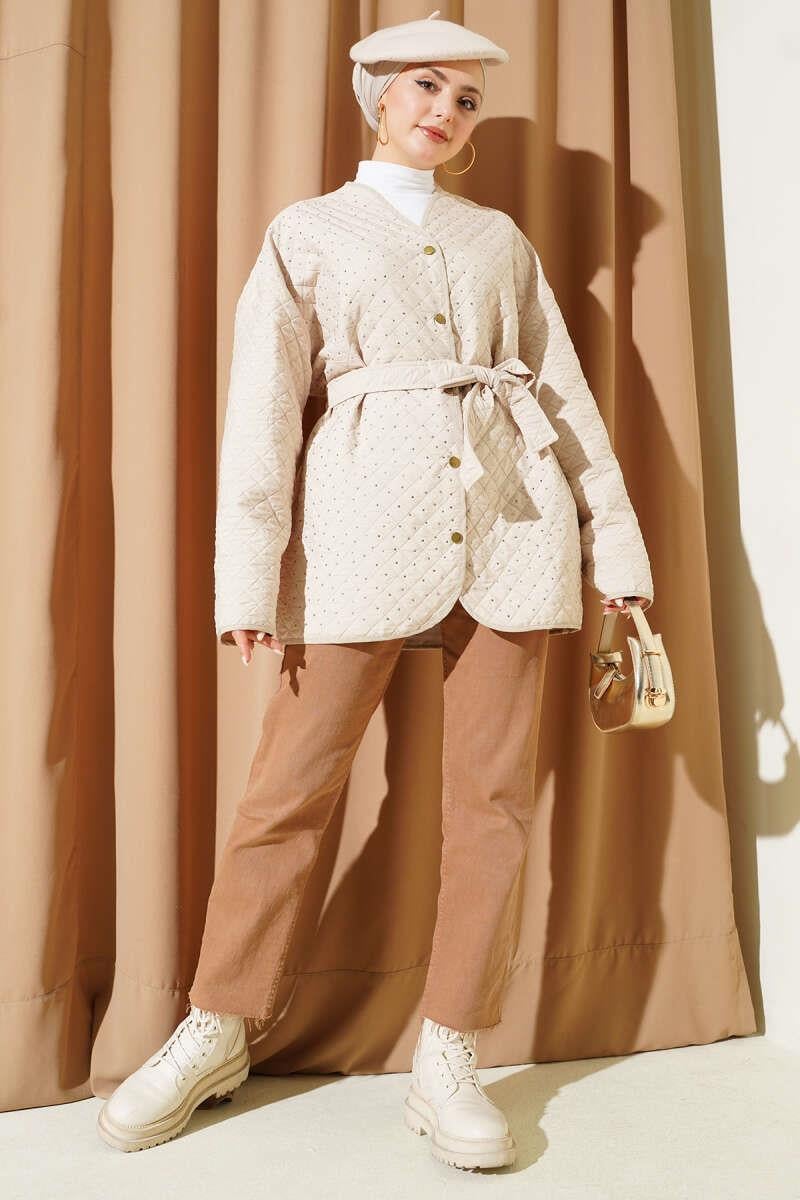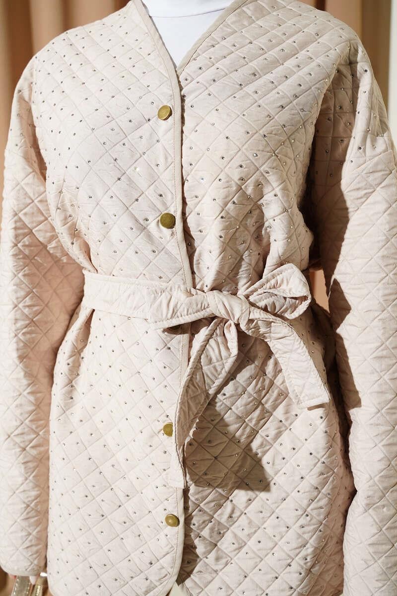 Stone Embellished Quilted Jacket, Beige (0527-4110-713620)