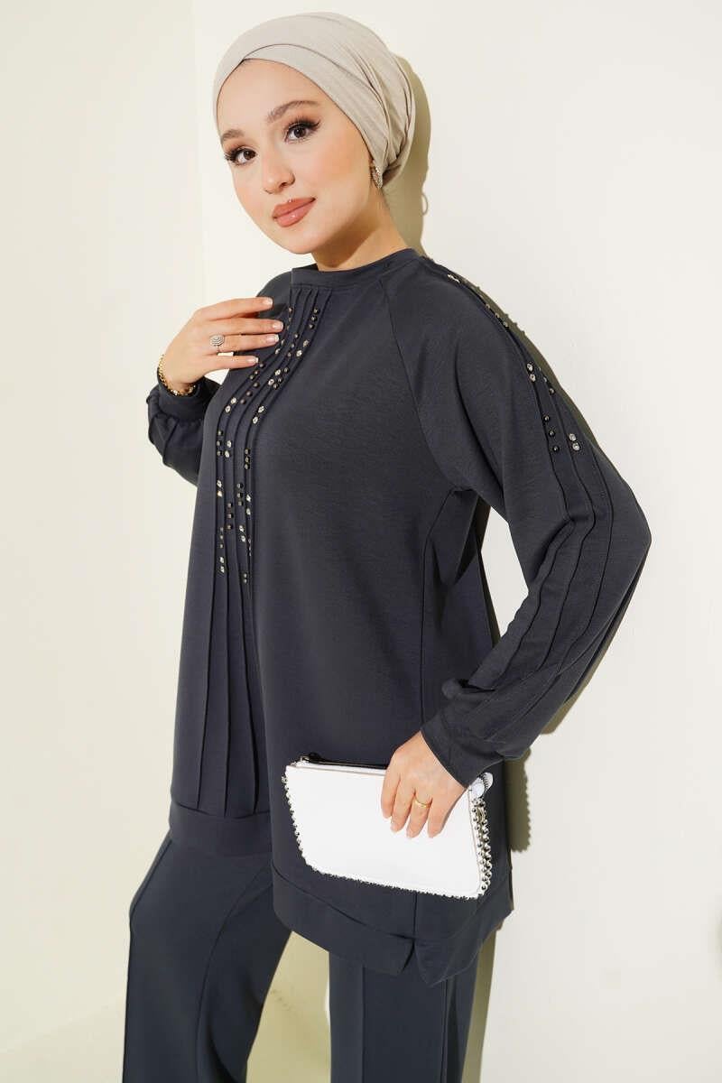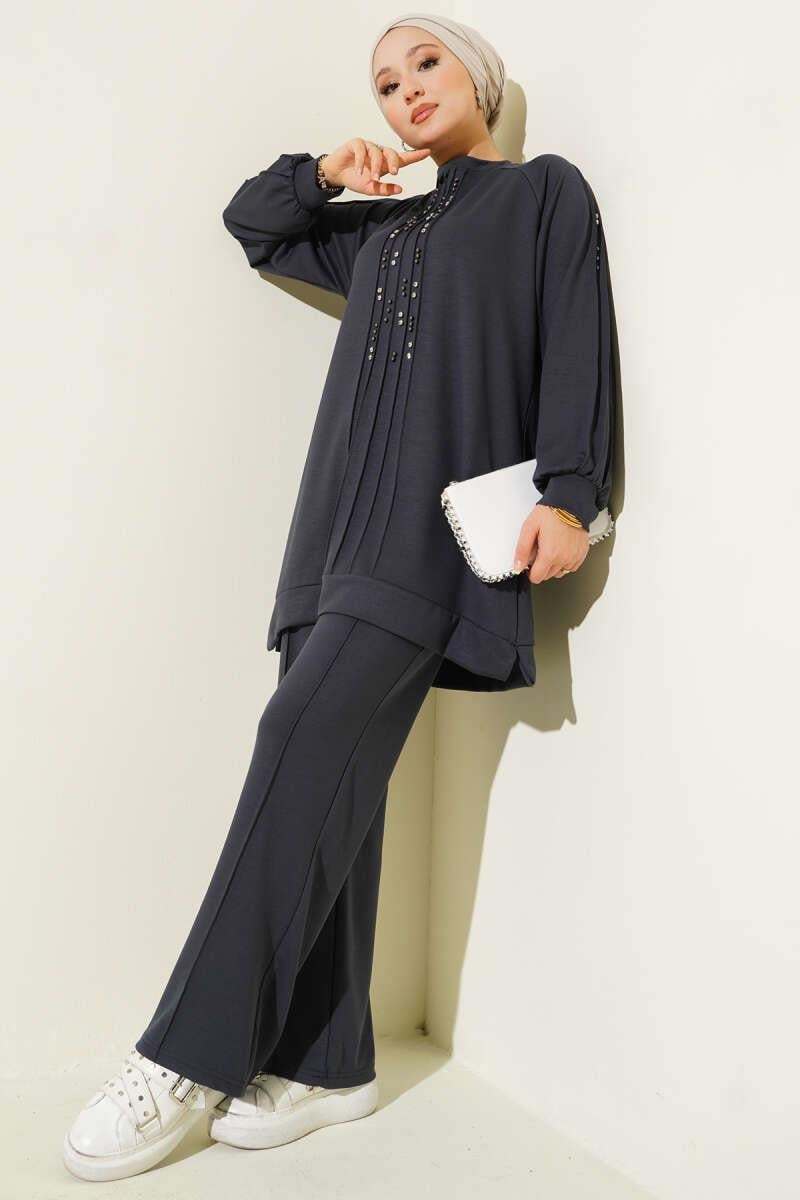 Stone Embellished Loysha 2 Piece Set Smoke Color (0026-3192-679478)