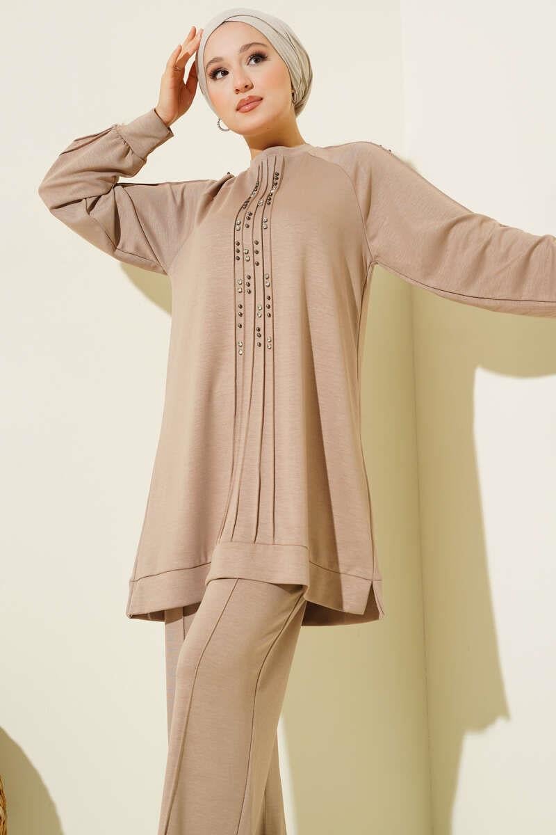 Stone-Decorated Loysha 2 Piece Set Latte (0026-3192-679490)