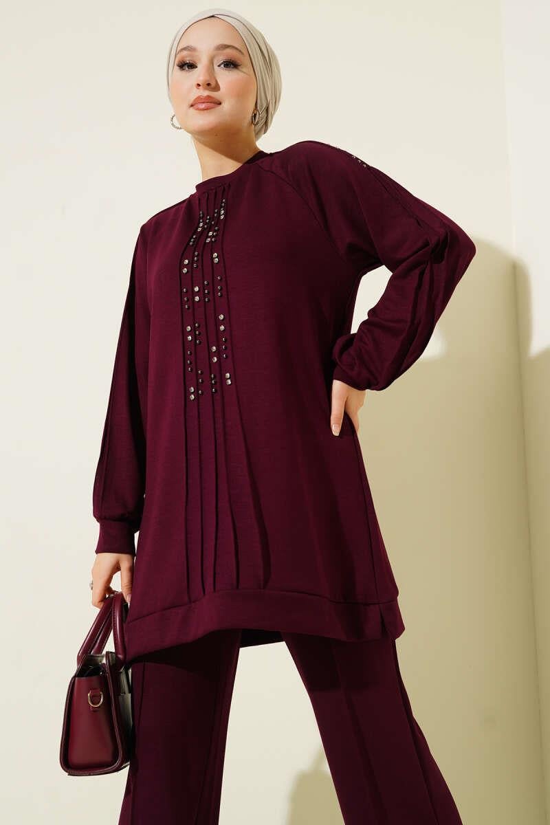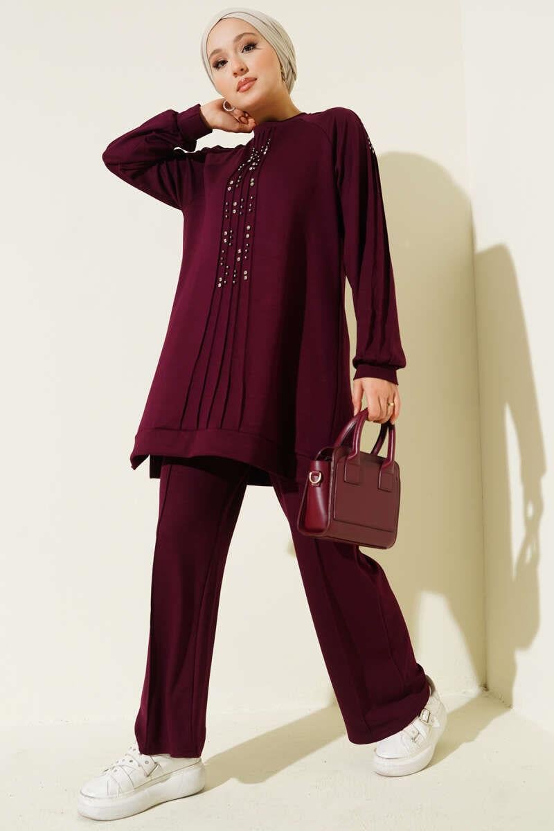 Stone-Decorated Loysha 2 Piece Set Plum (0026-3192-679494)