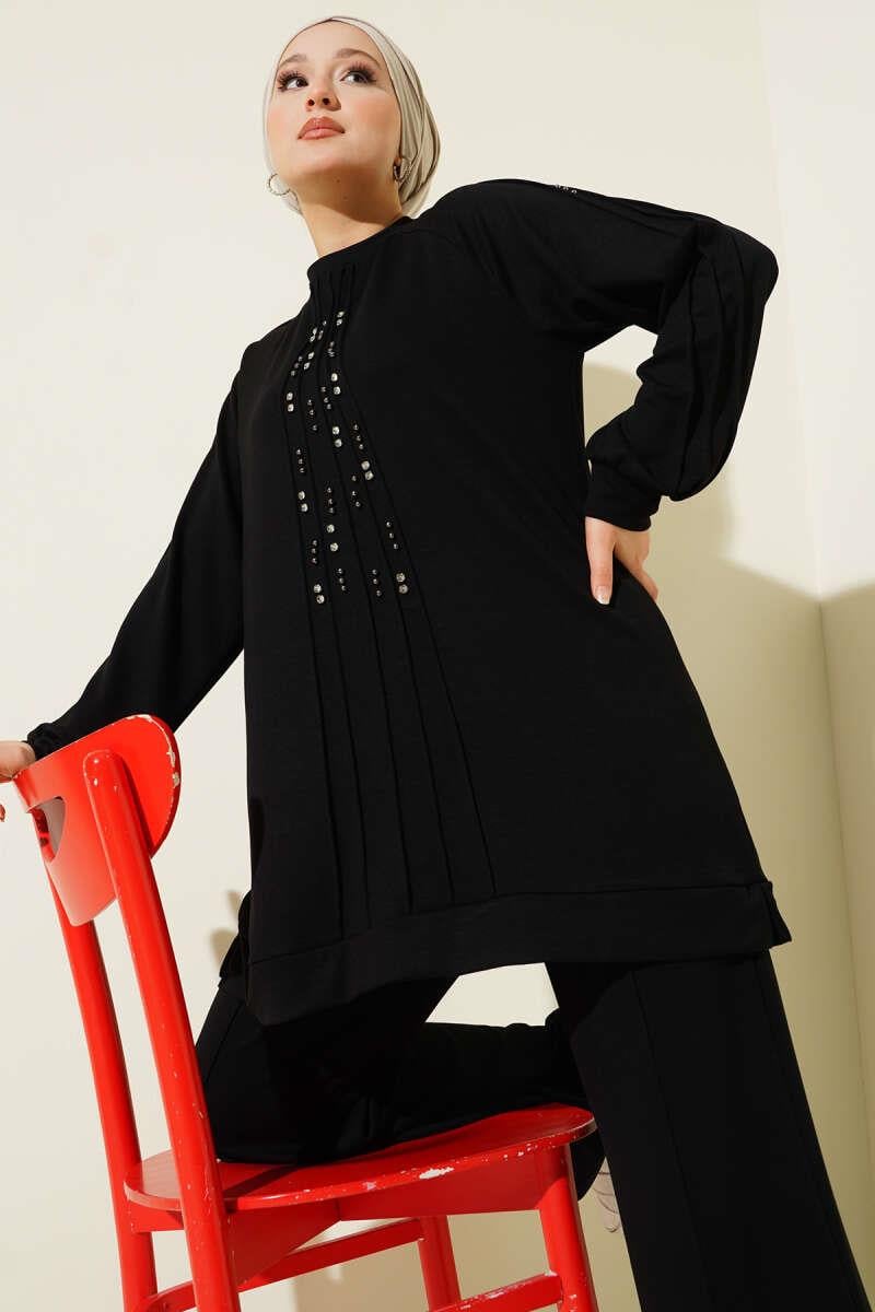 Stone Embellished Loysha 2 Piece Set Black (0026-3192-679498)