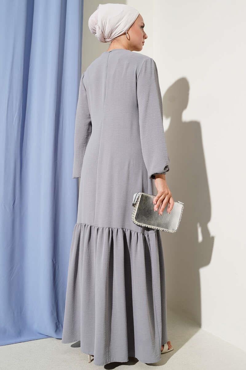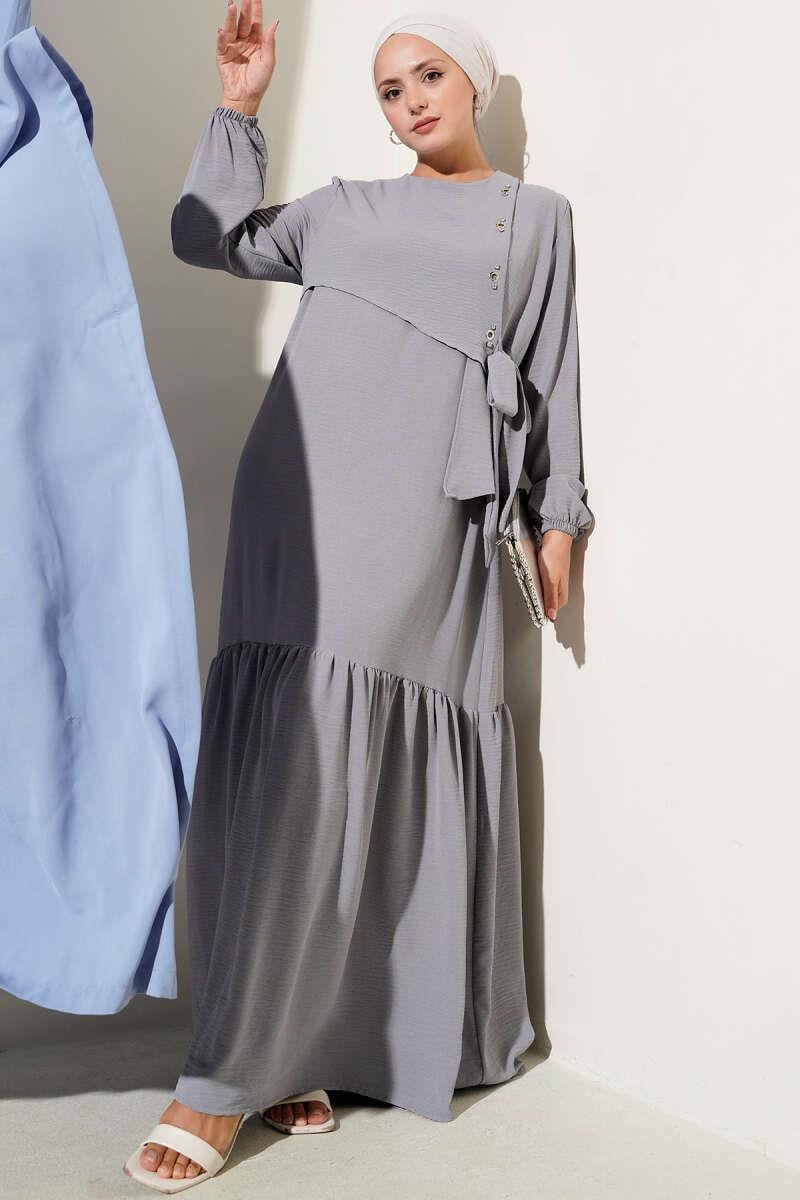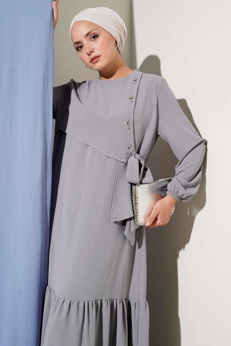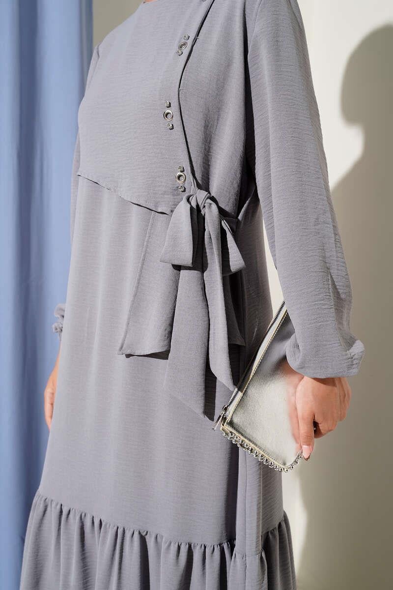 Tied Dress with Stoned Bird Eye Detail in Gray (8089-289-656287)