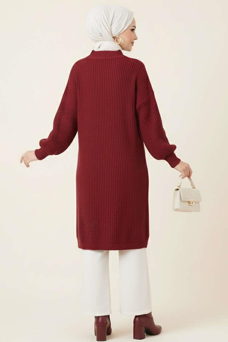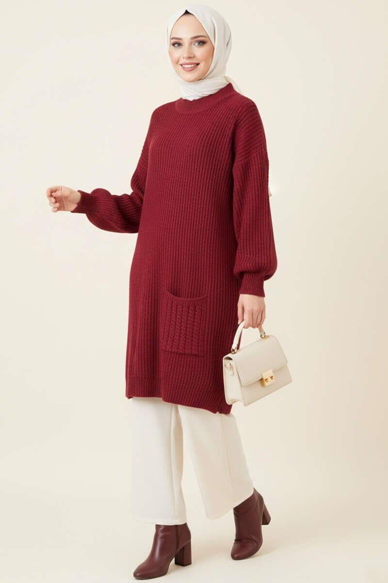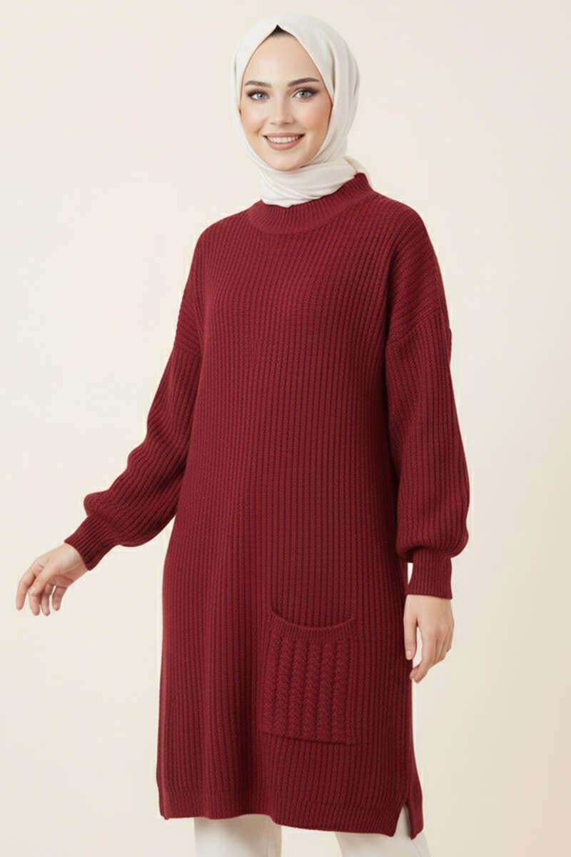 Single Pocket Knitted Long Knitwear Tunic Burgundy (0875-4307-683544)