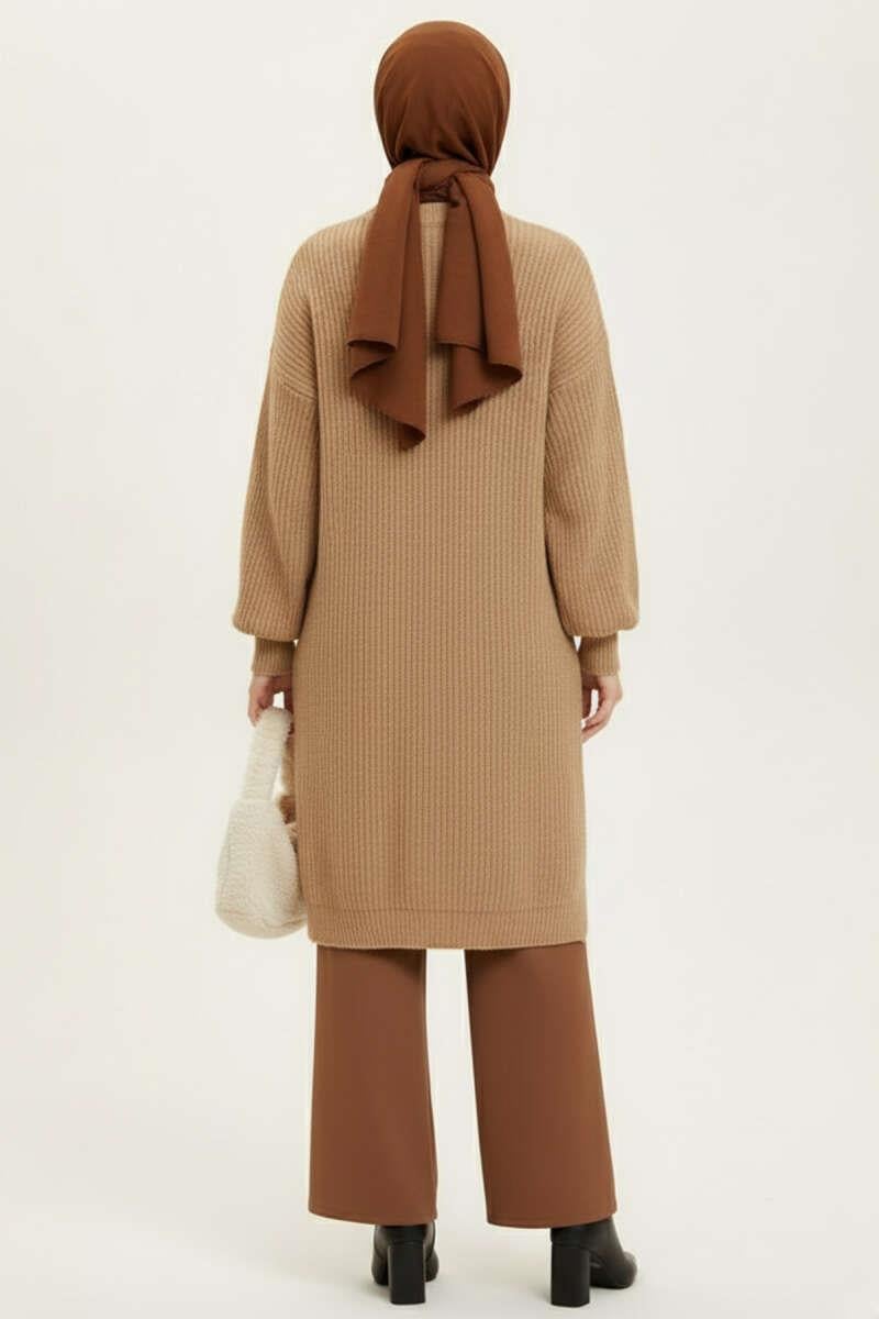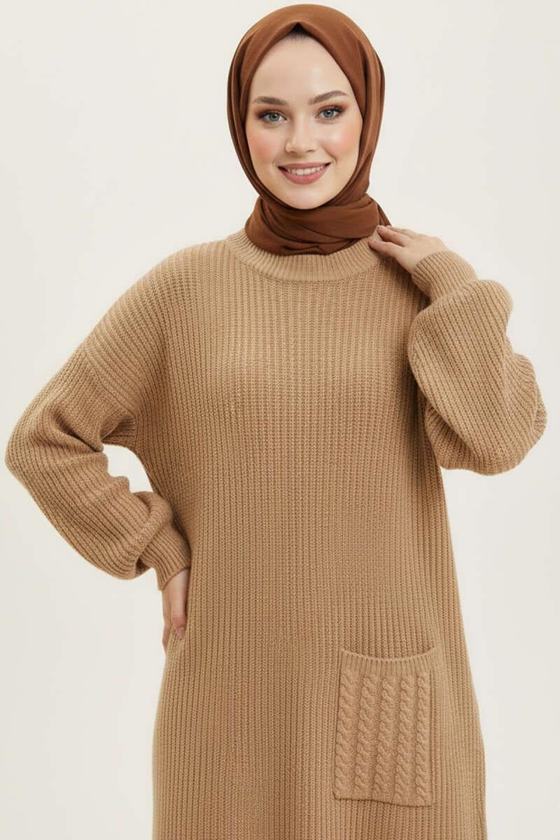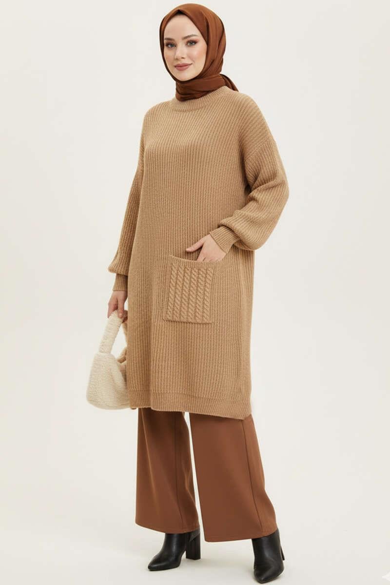 Single Pocket Knitted Long Knitwear Tunic Camel (0875-4307-683545)