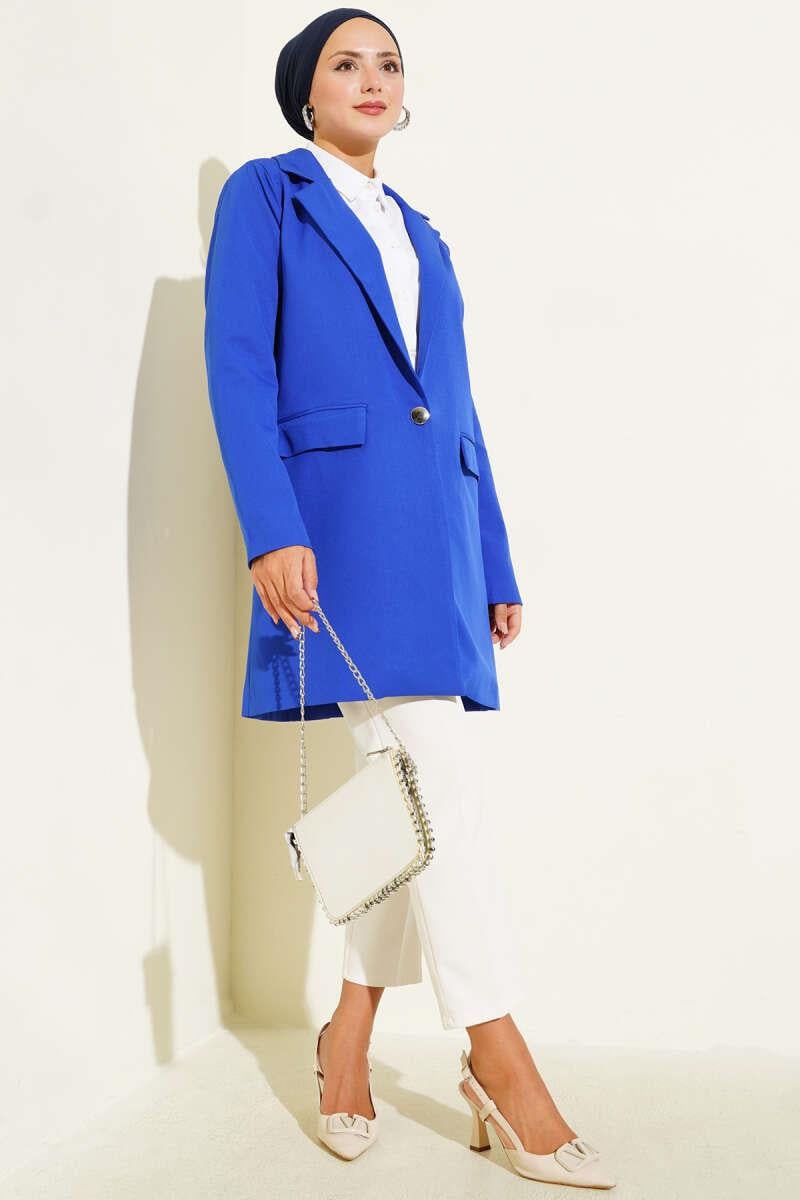 Single Button Blazer Jacket in Saxe (0902-24635-553437)