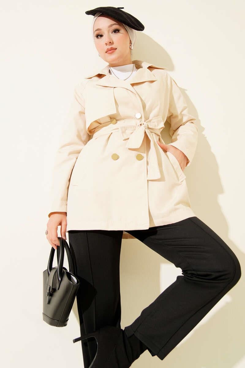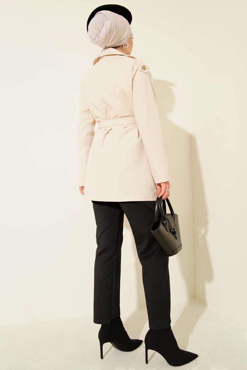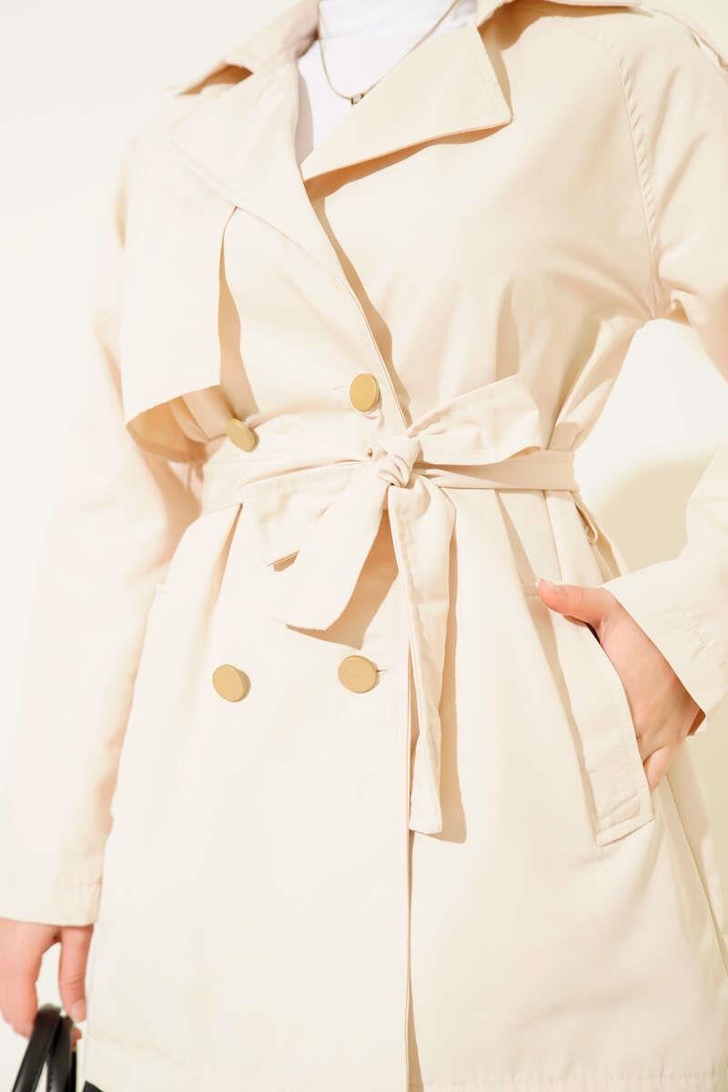 One Shoulder Epaulette Buttoned Trench Coat Beige (0999-4218-10-678257)