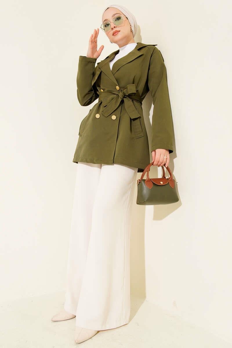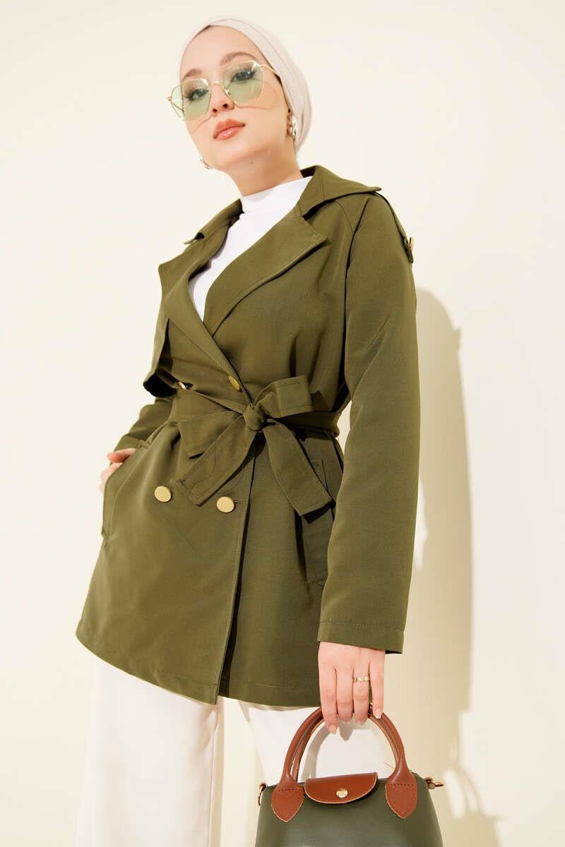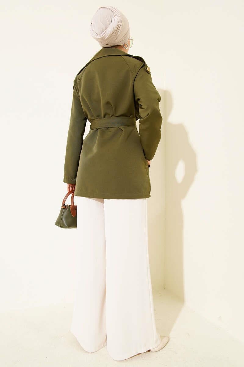 One Shoulder Epaulette Buttoned Trench Coat Khaki (0999-4218-10-678266)