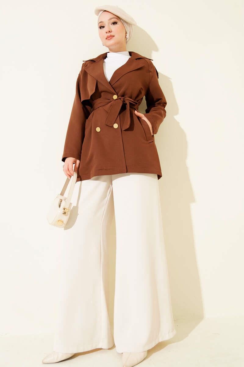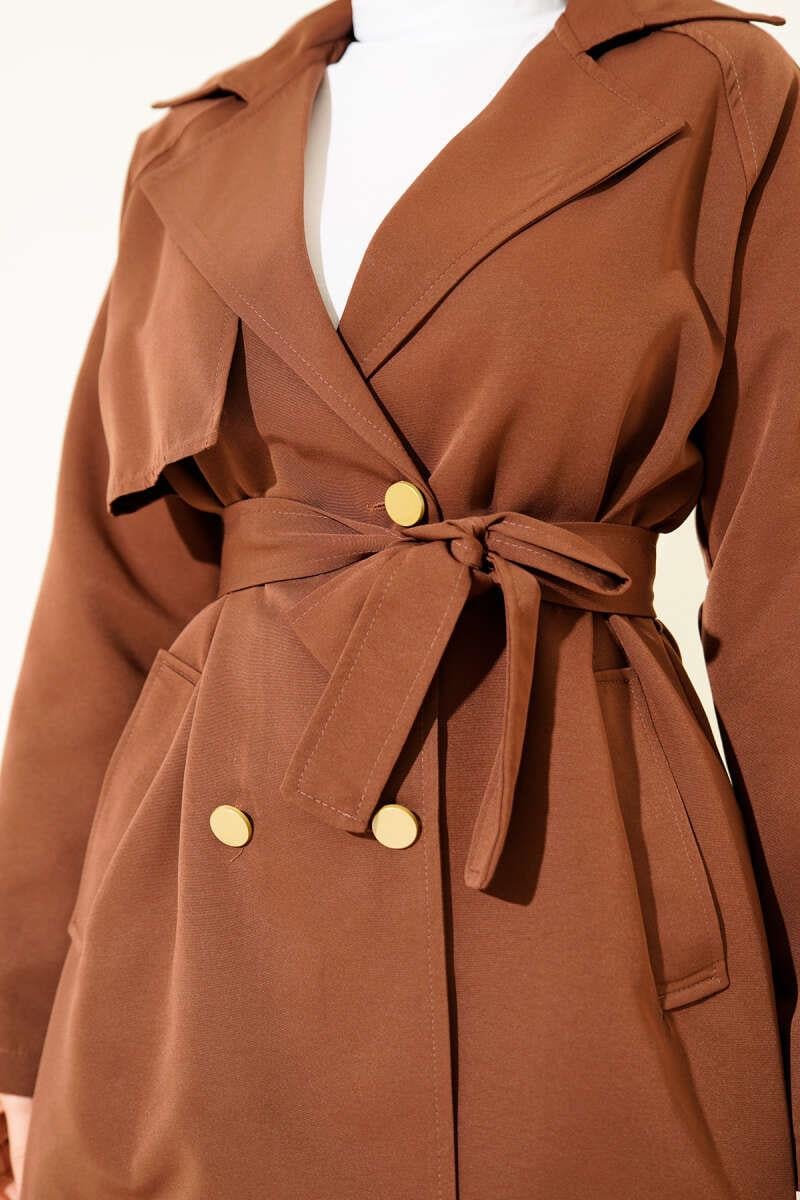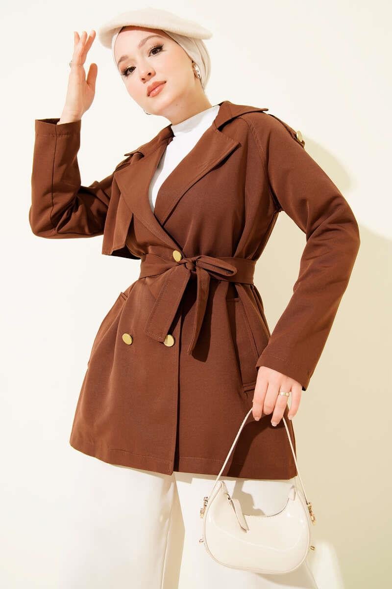 One Shoulder Epaulette Buttoned Trench Coat Brown (0999-4218-10-678281)