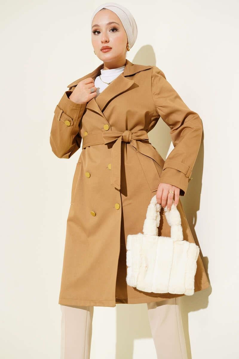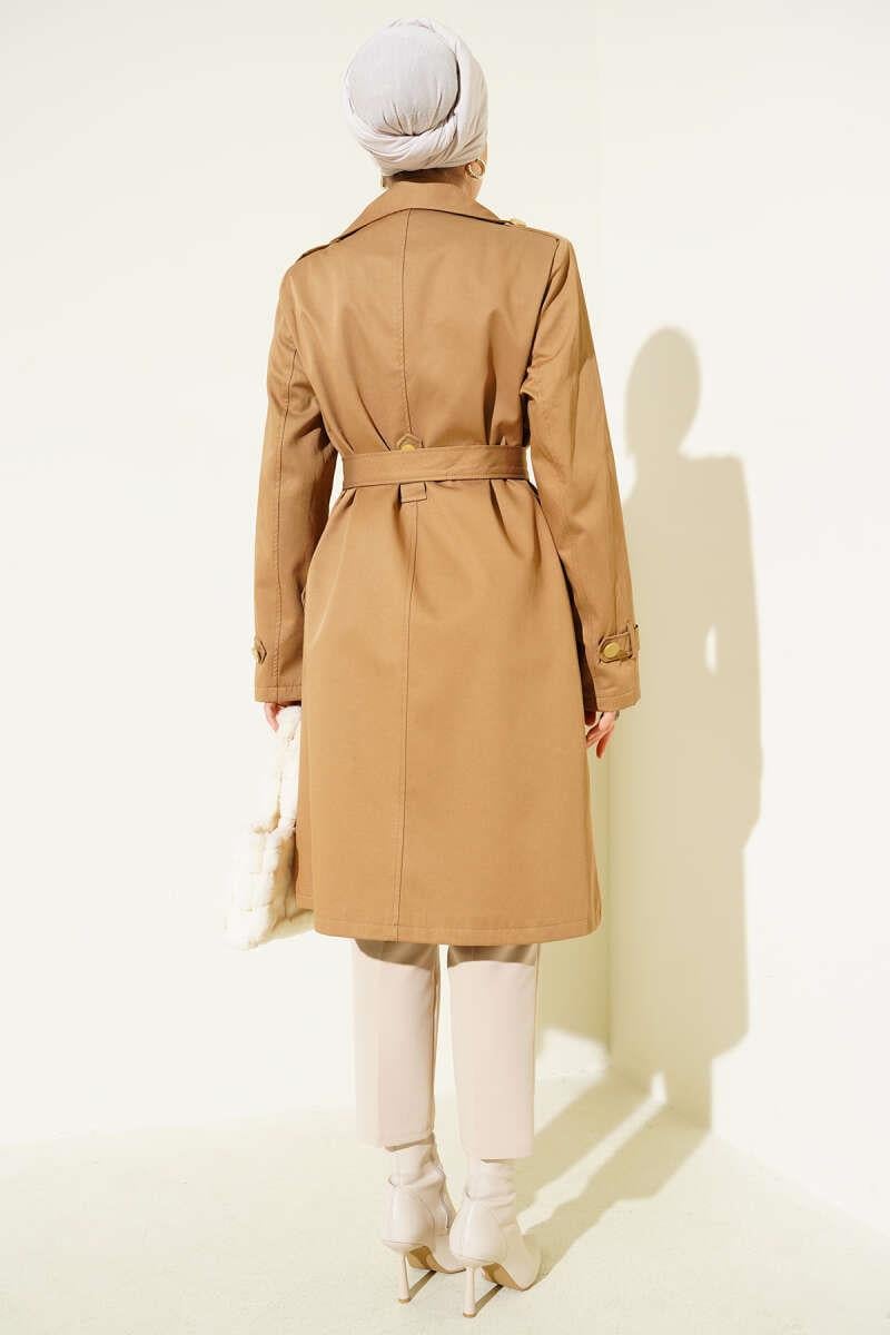 Single Shoulder Epaulette Double Breasted Trench Coat Camel (0999-6217-673613)