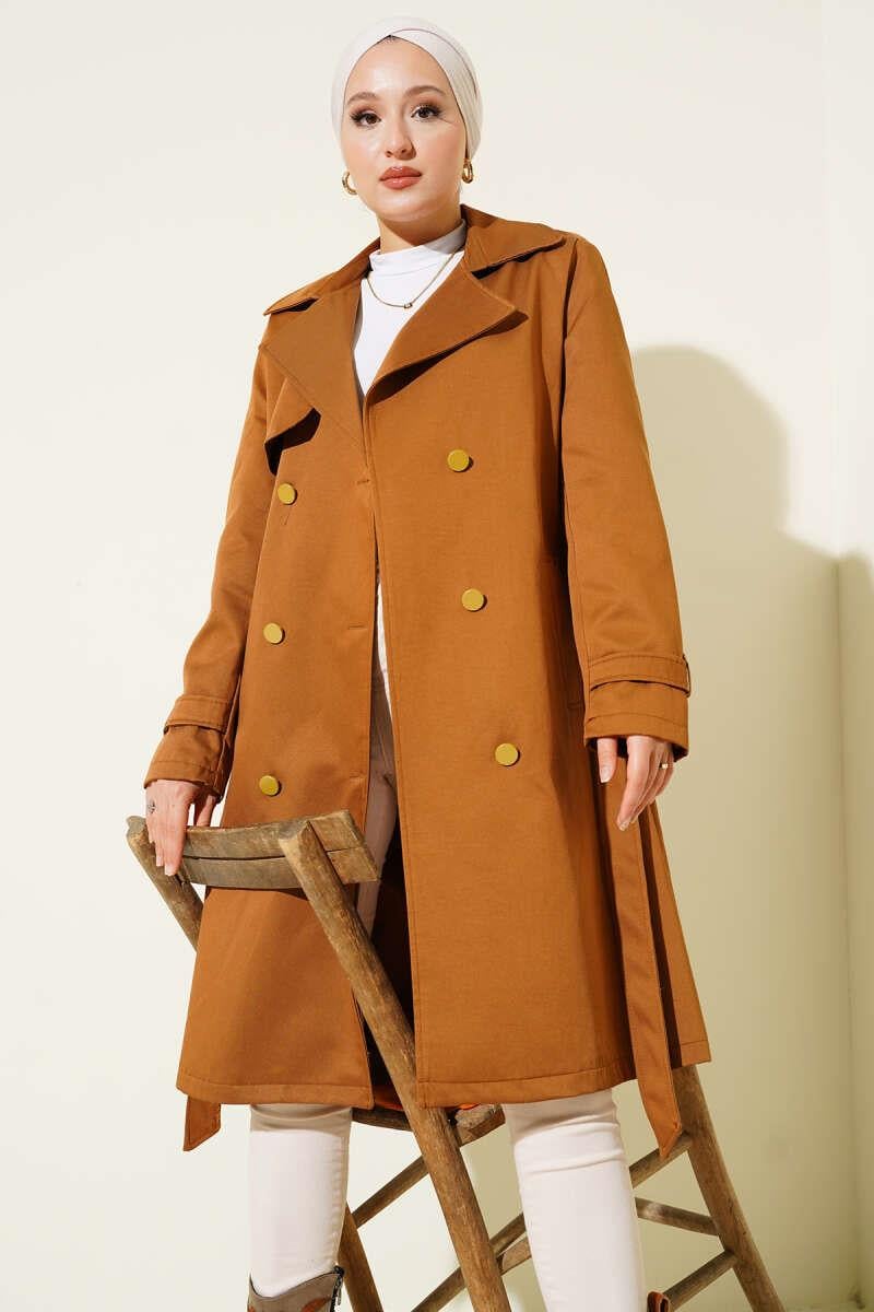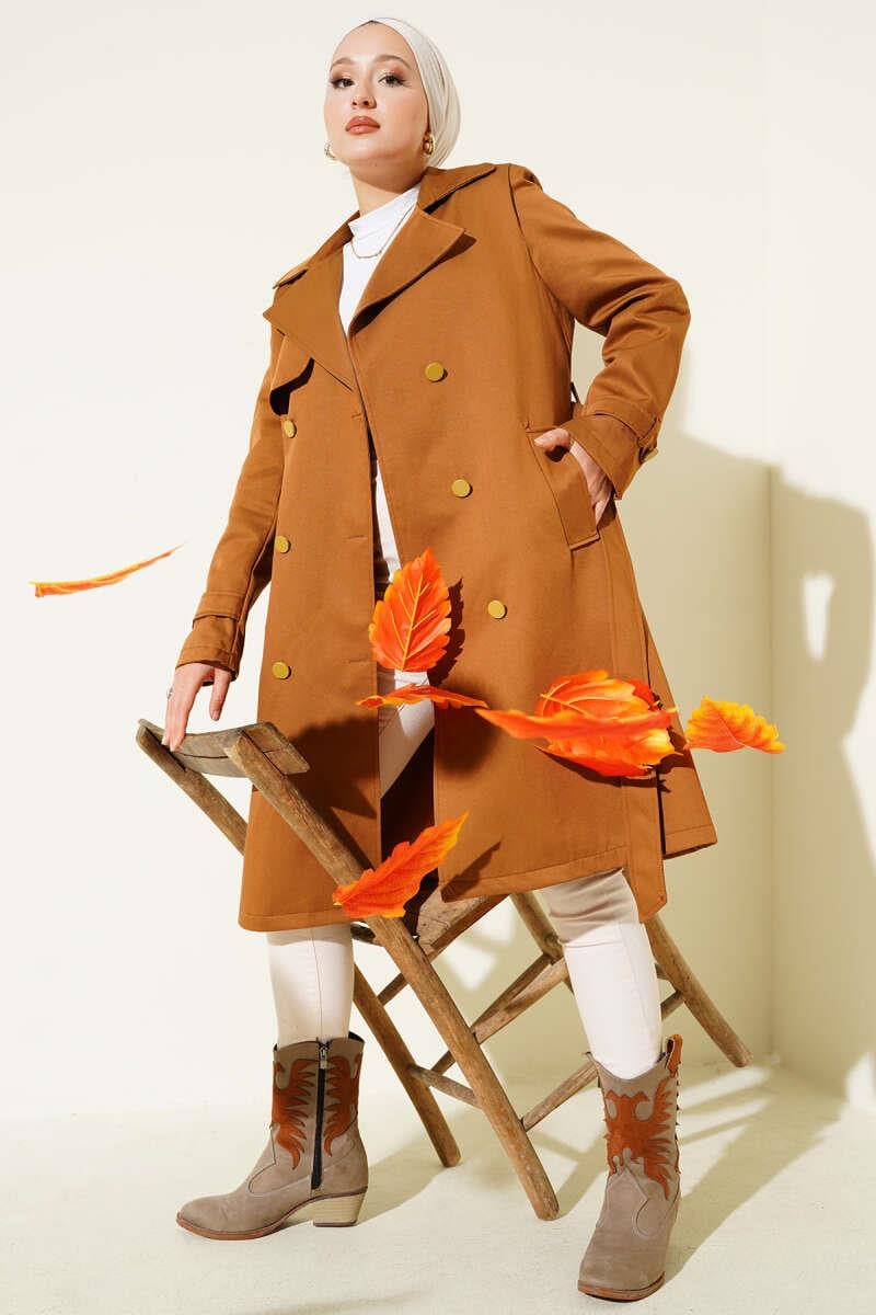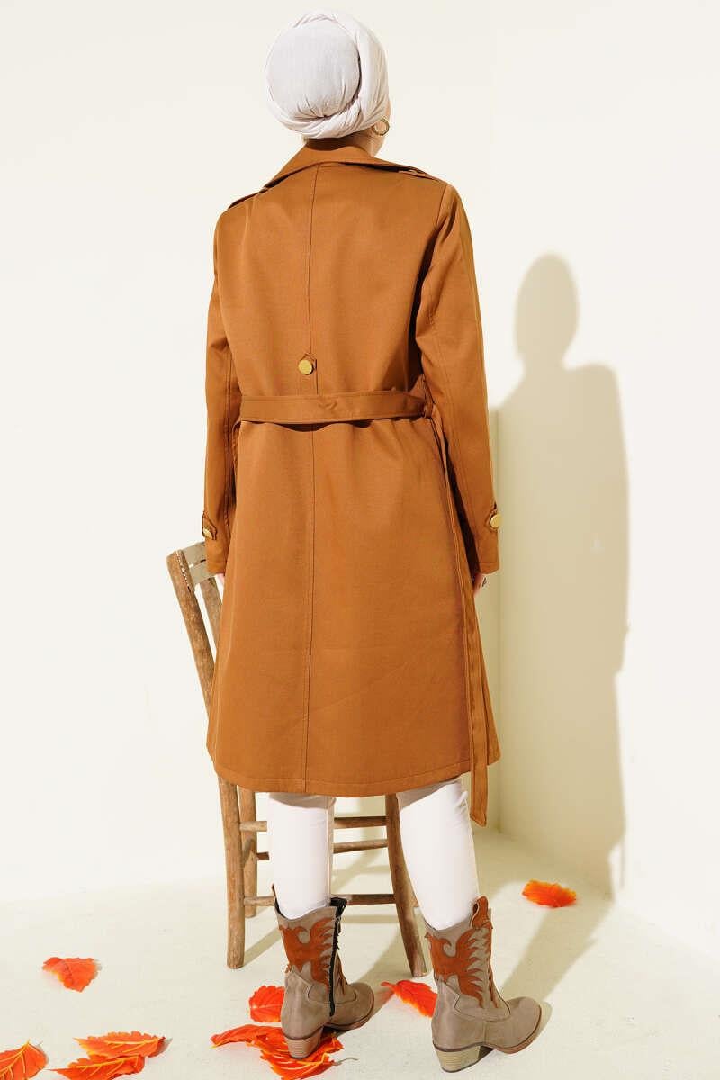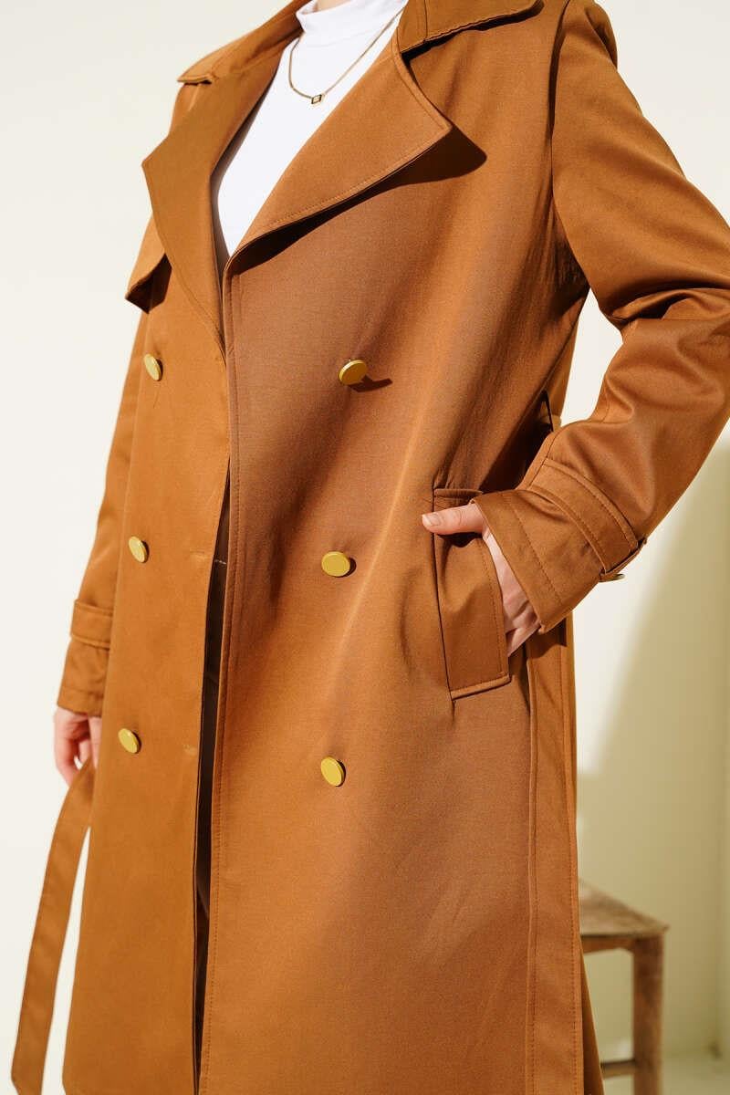 Single Shoulder Epaulette Double Breasted Trench Coat Tan (0999-6217-673633)