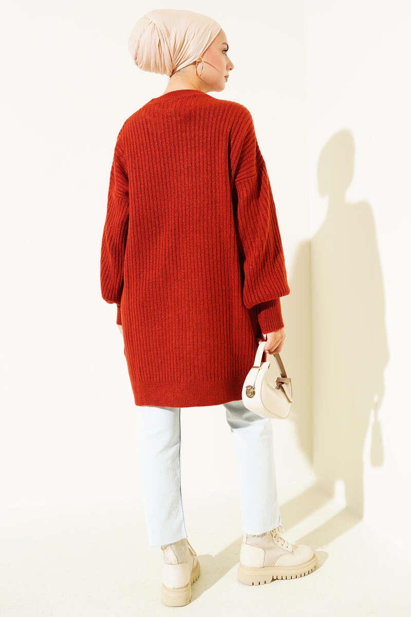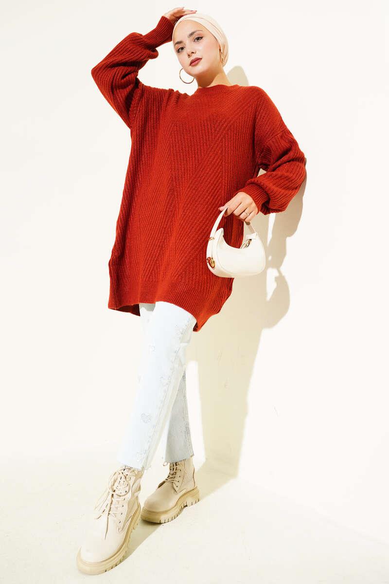 Asimetrik Kabartma Çizgili Triko Tunik Kiremit (8374-0023-672150)