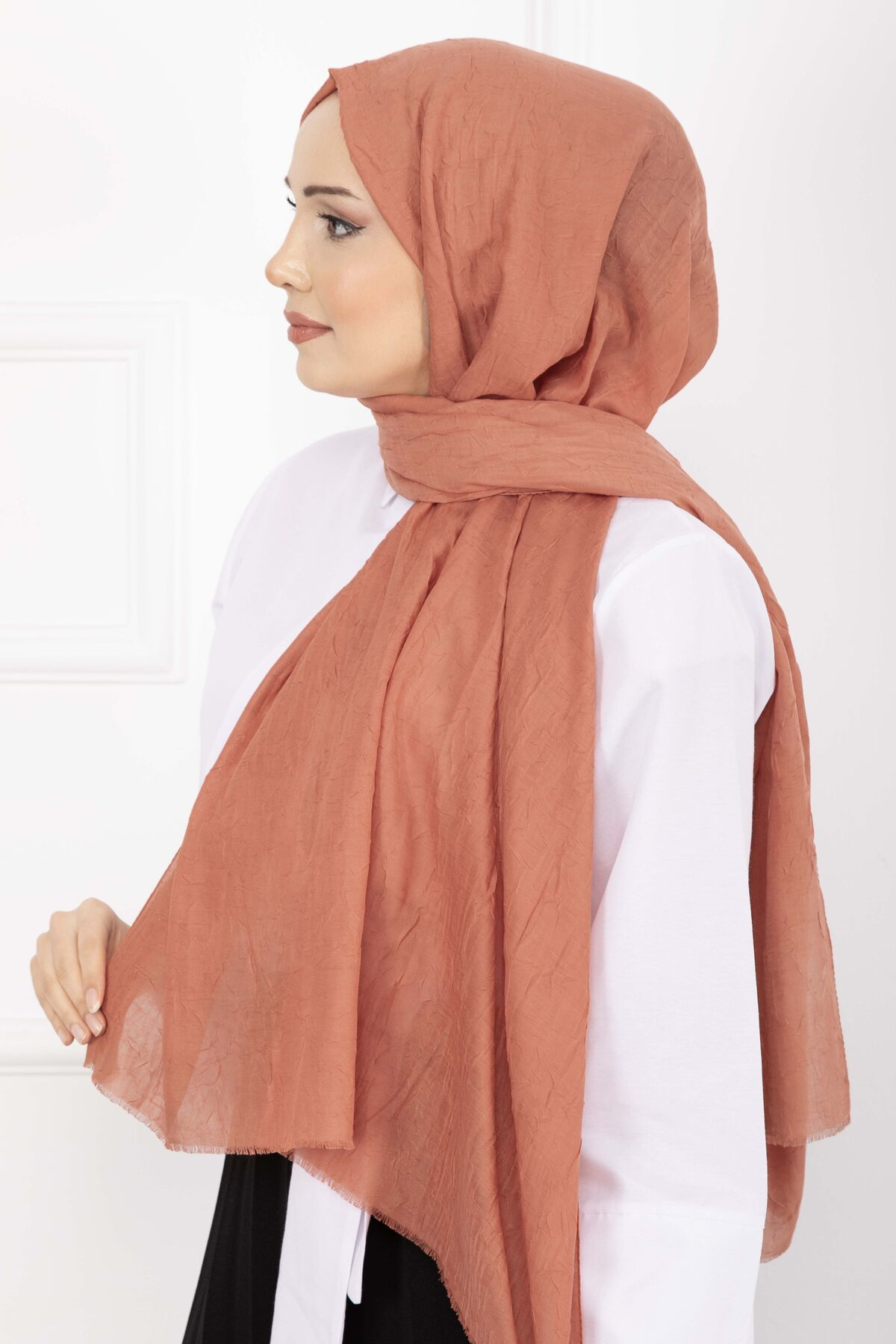 Esnek yapısı sayesinde kırışmaya dayanıklı ve nefes alıcı özelliğe sahiptir. Ağırlık yapmayan kumaş özelliği ile sık ve uzun süreli kullanıma uygundur. Kırışma ve başta kayma yapmaz. Özel günlerinizde, günlük hayatta ve her mevsimde, geniş renk çeşidiyle rahatlıkla kullanacaksınız.
