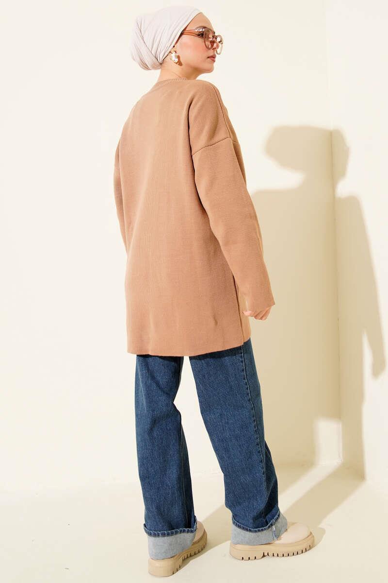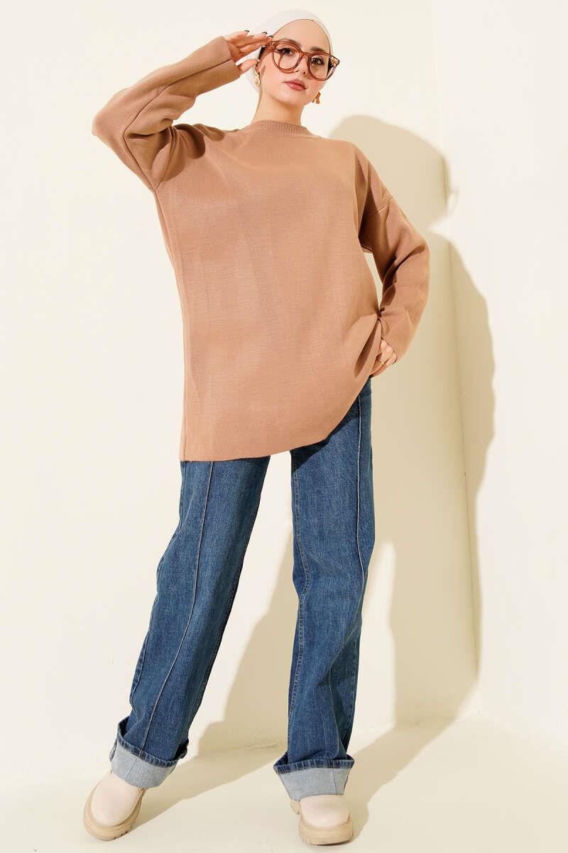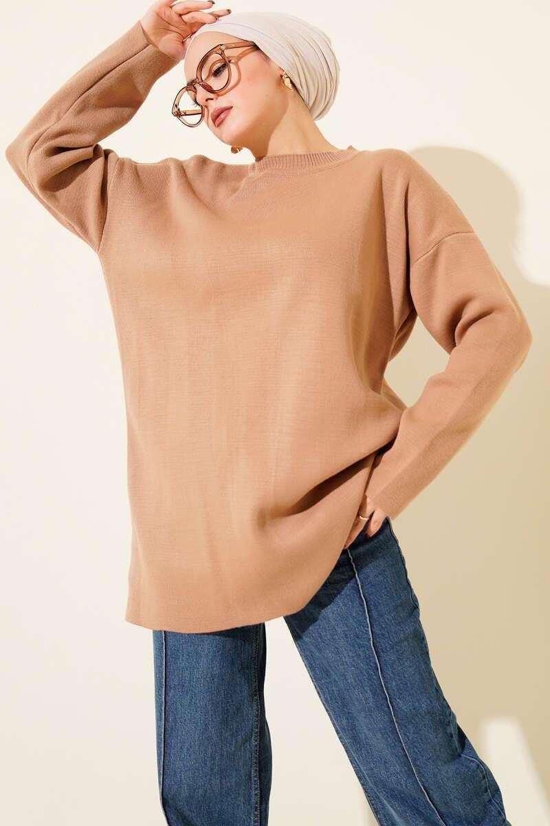 Basic Bisiklet Yaka Düz Triko Tunik Latte (0875-7183-707320)